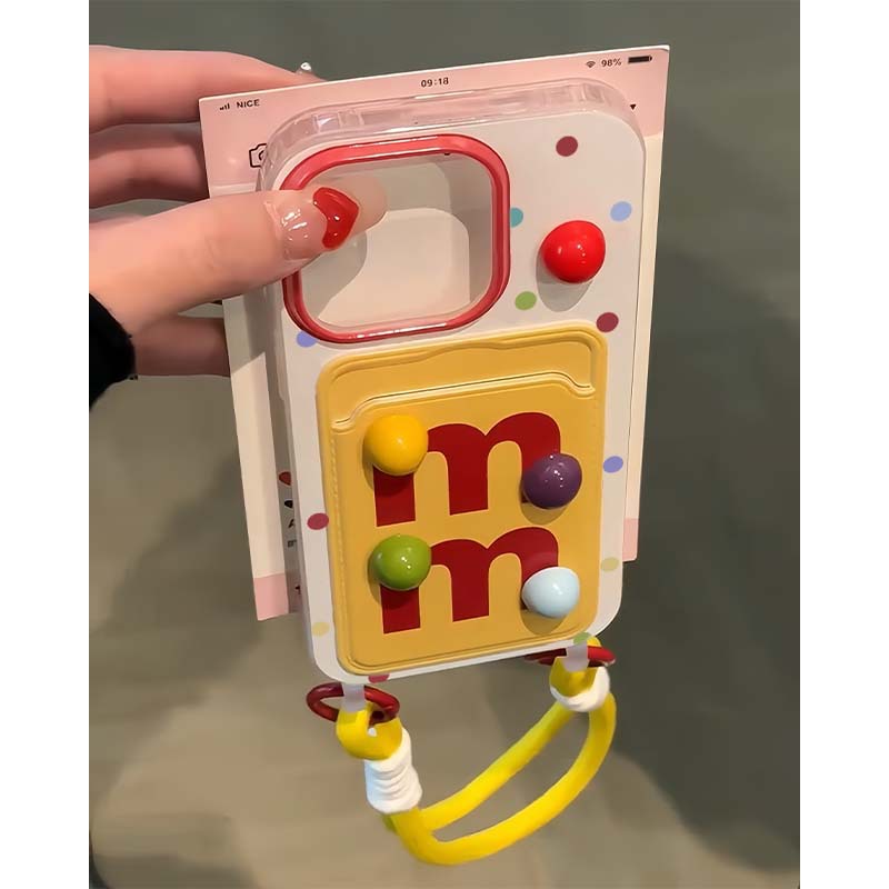 M豆-卡包壳+立体五色圆球+黄手提挂绳