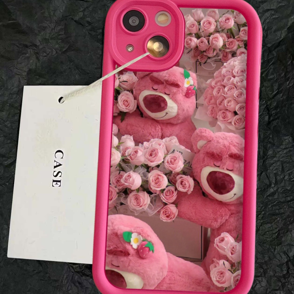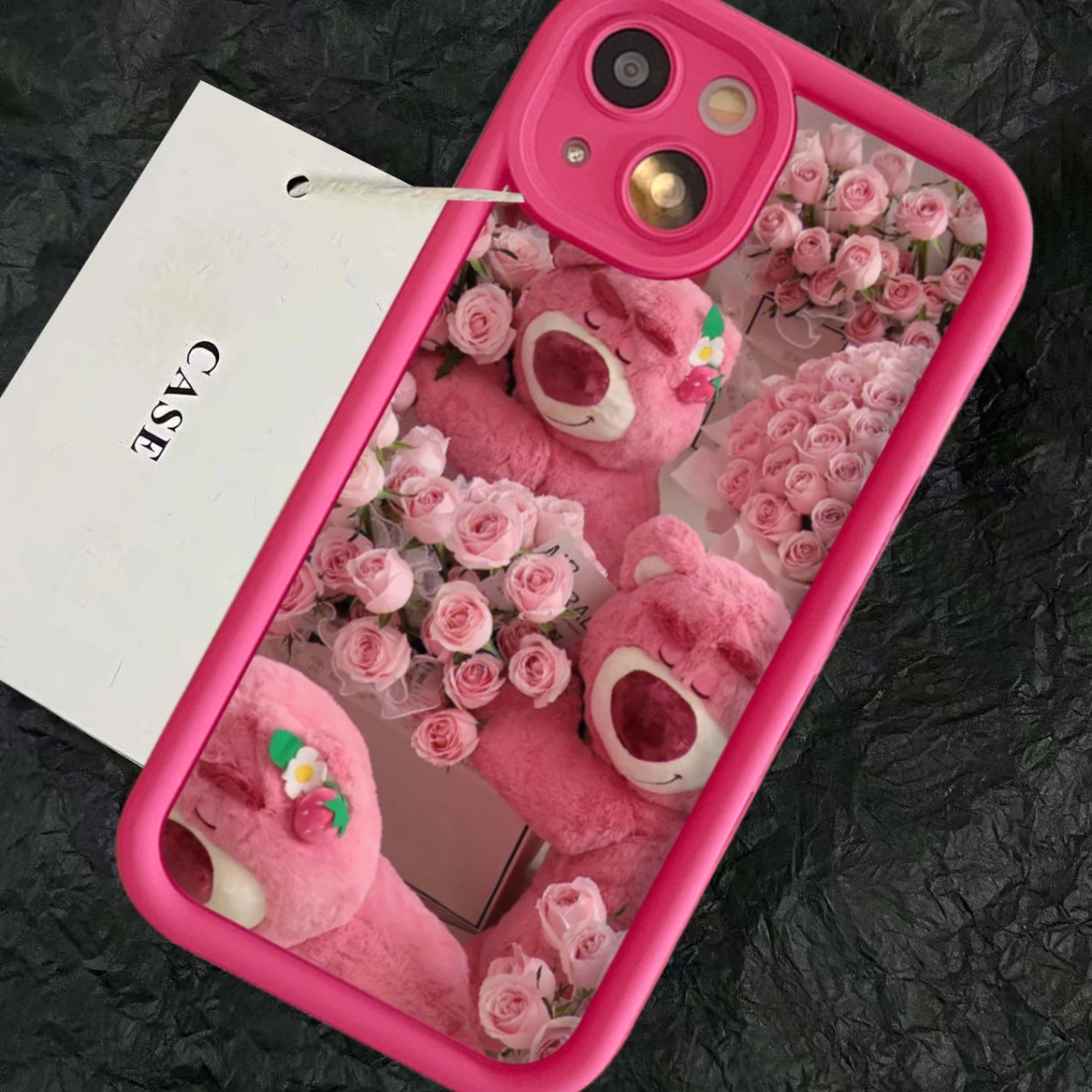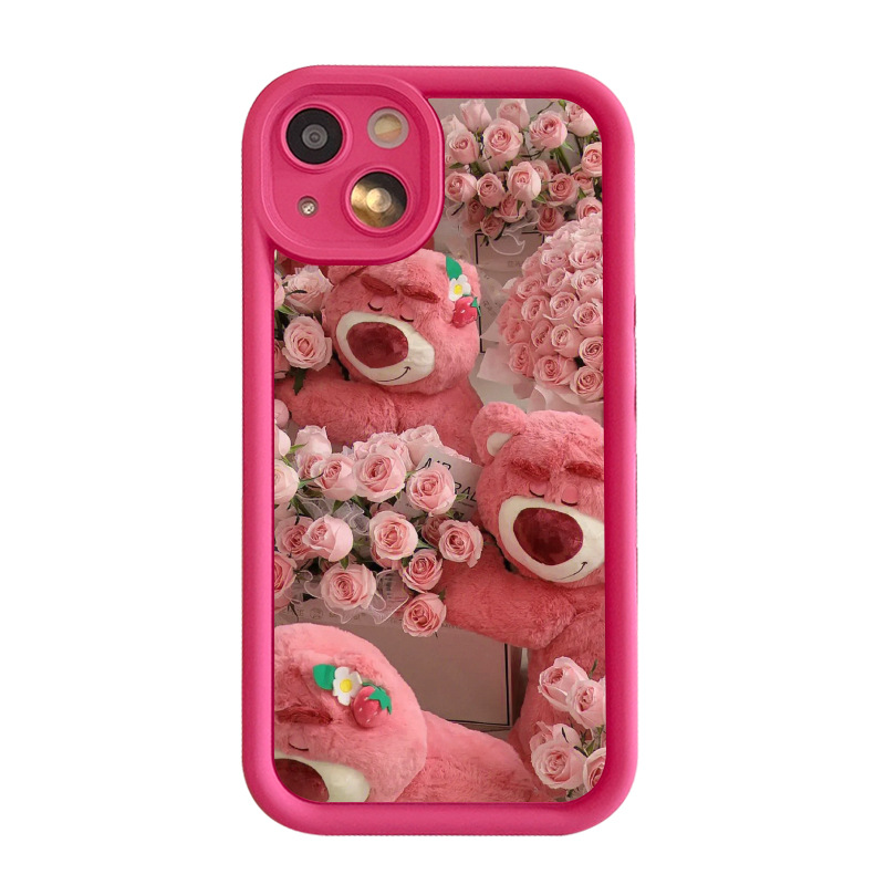 可爱玫瑰草莓熊iPhone15ProMax手机壳苹果14女12全包xs/xr套15pro