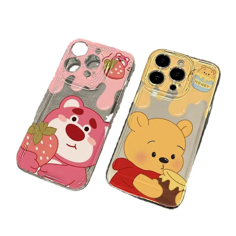 情侣草莓熊苹果14手机壳适用于12透明iphone13pro/11/8plus全包xr