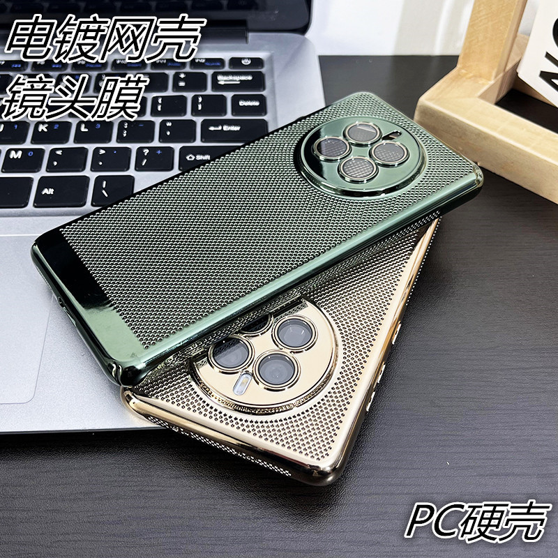 适用华为MATE50电镀网孔散热手机壳P50PRO镜头膜简约防摔PC保护套