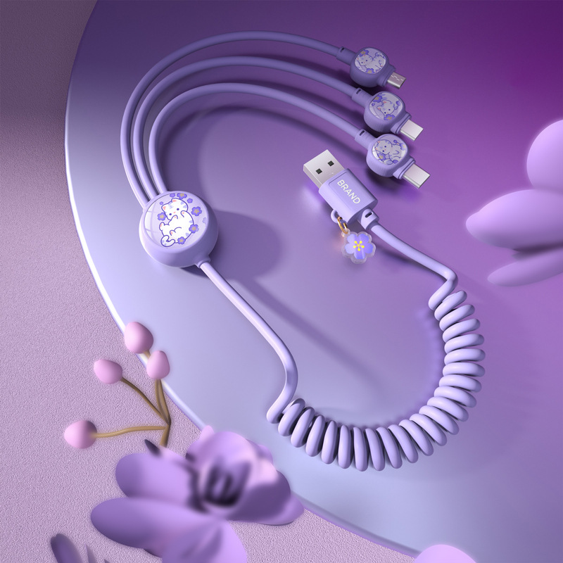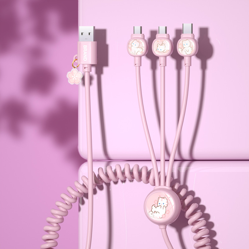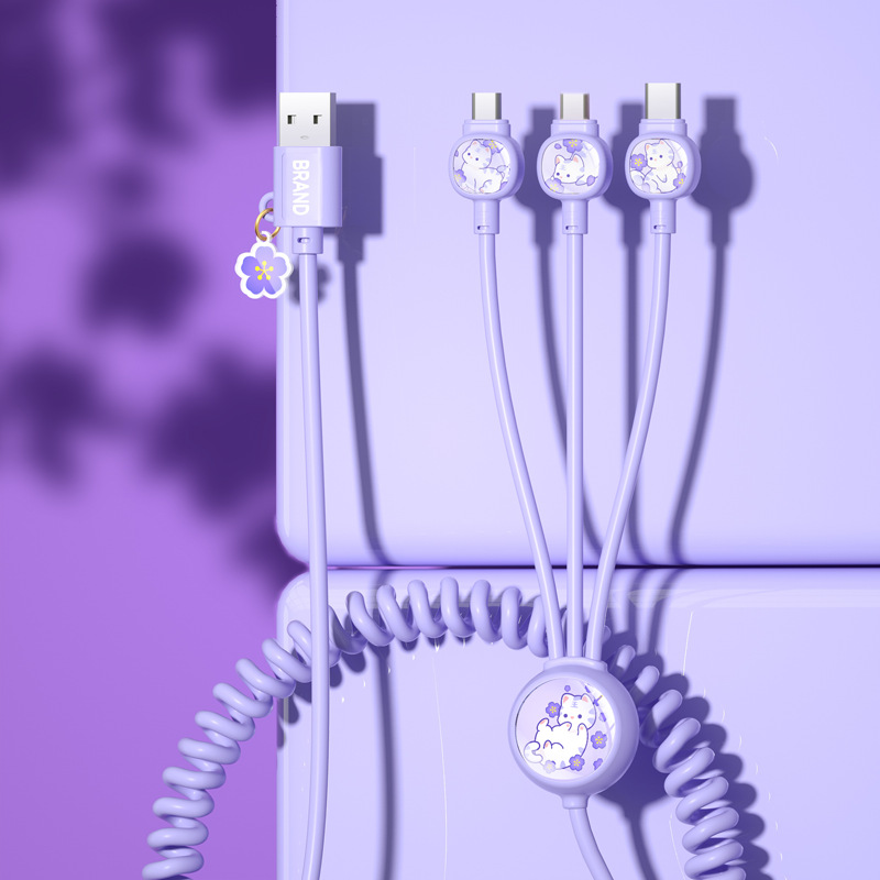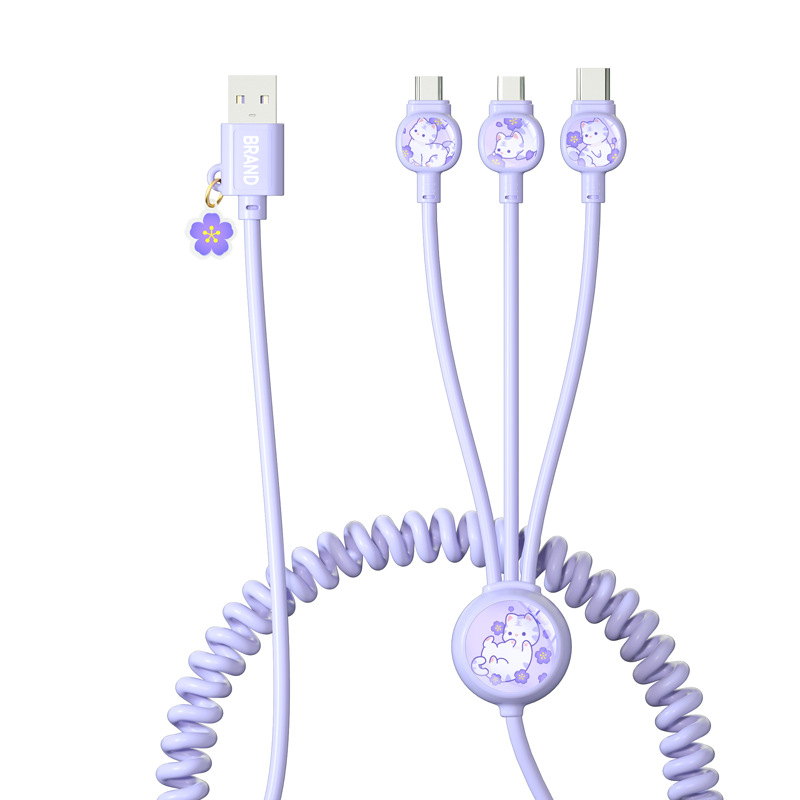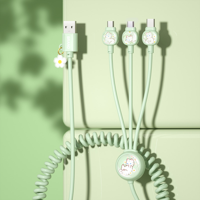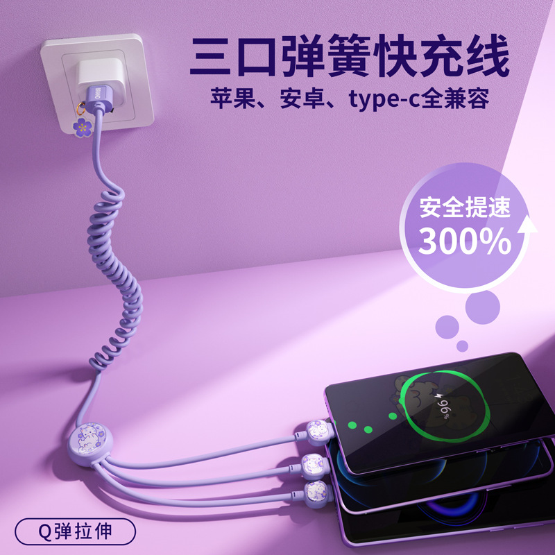 弹簧数据线收纳一拖三快充充电线 适用苹果三合一伸缩线1.5M现货