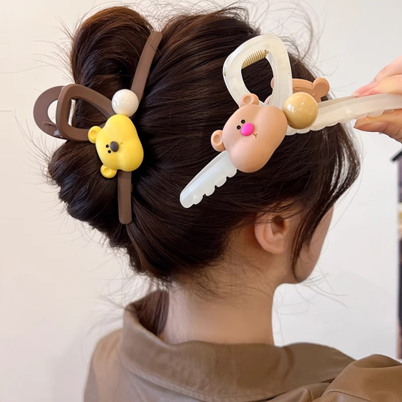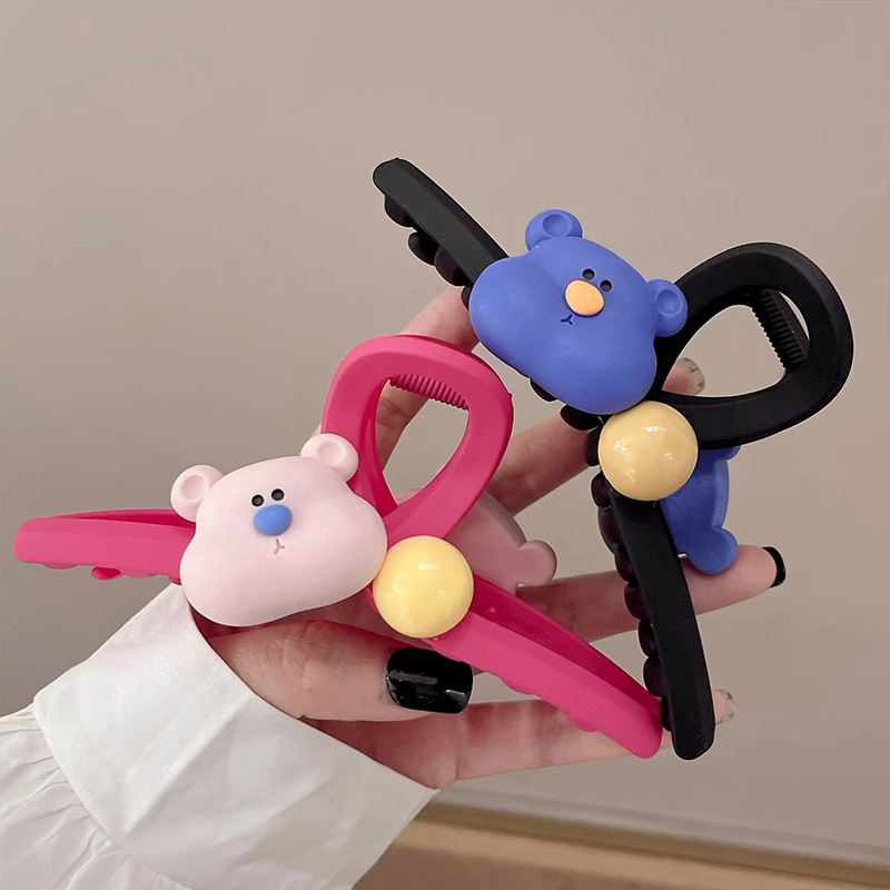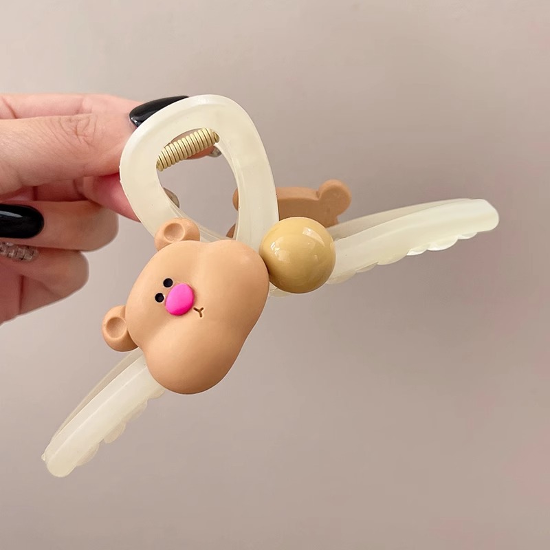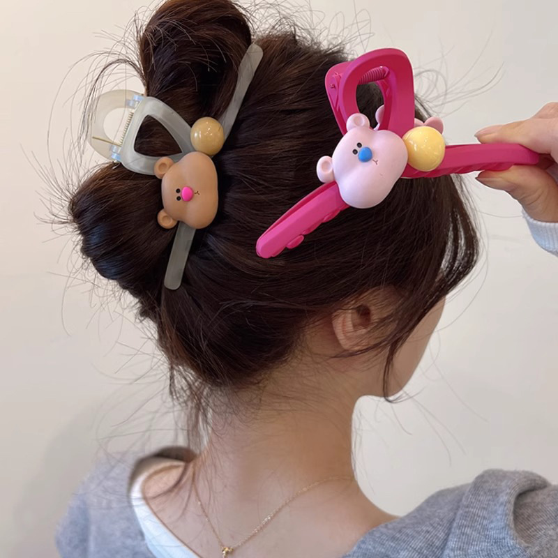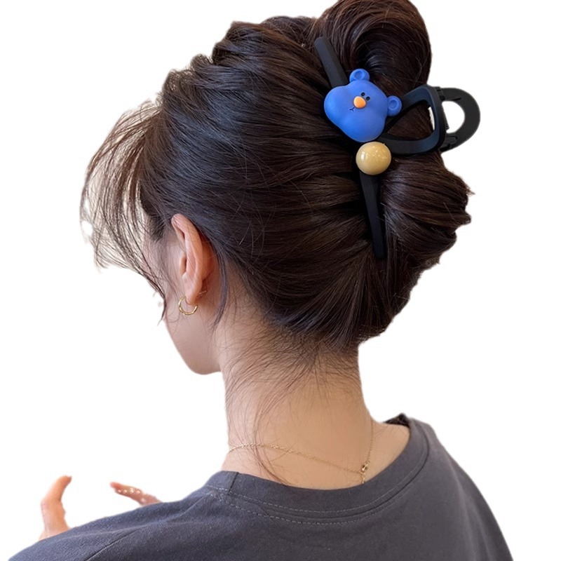 可爱嘟嘟熊发夹后脑勺夏季甜美新款鲨鱼夹网红高级感盘发抓夹头饰