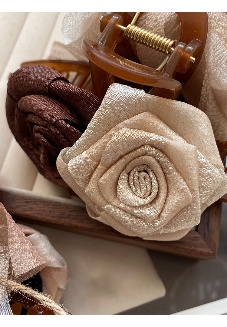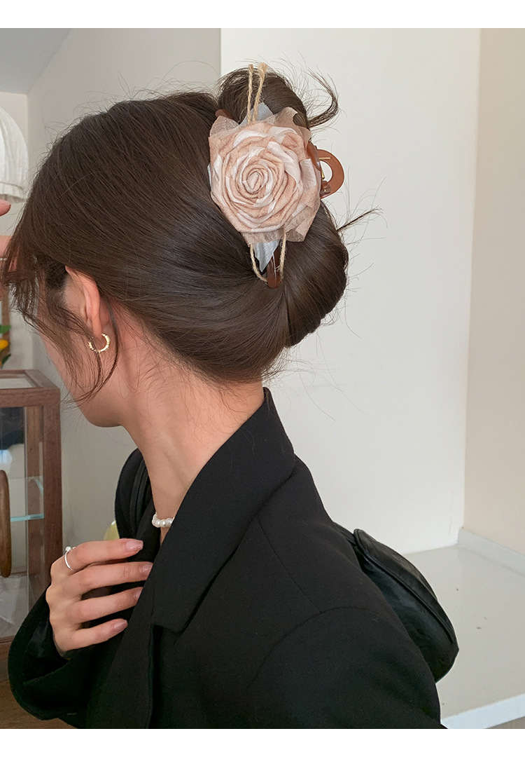 法式复古干花玫瑰抓夹美拉德后脑勺大号鲨鱼夹高级感发夹新款头饰