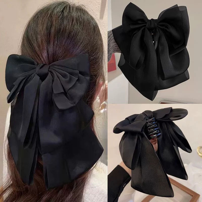 网红气质百搭大蝴蝶结马尾夹蝴蝶结发卡甜美公主头抓夹缎面蝴蝶结