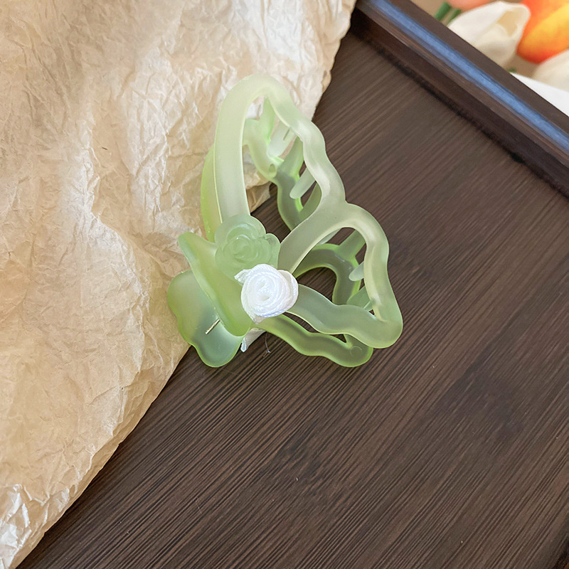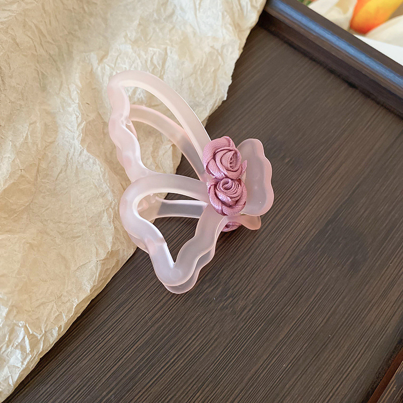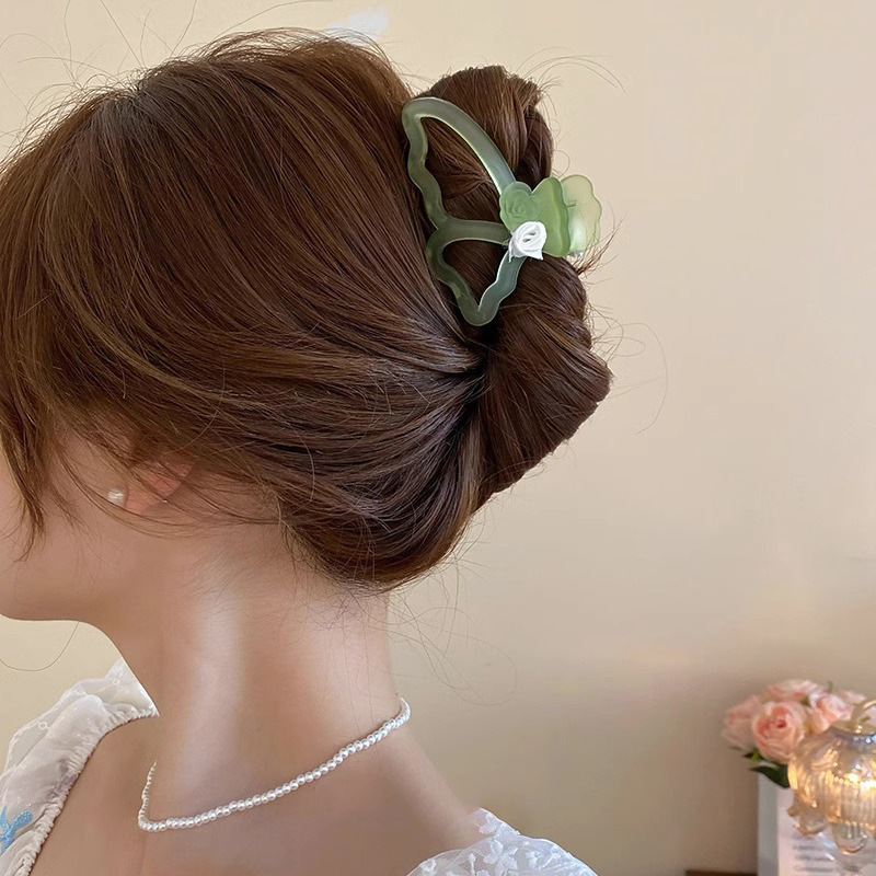 小清新精致玫瑰蝴蝶抓夹发夹夏季温柔唯美盘发鲨鱼夹小众文艺发饰