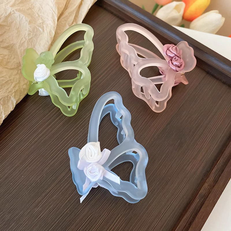 A6736 浅蓝玫瑰蝴蝶抓夹