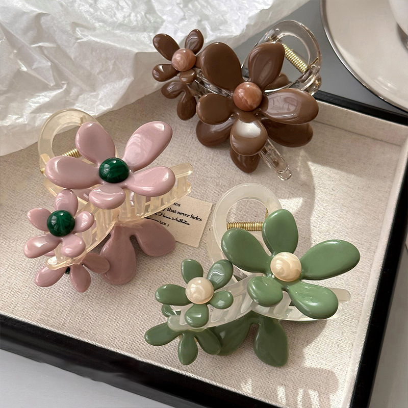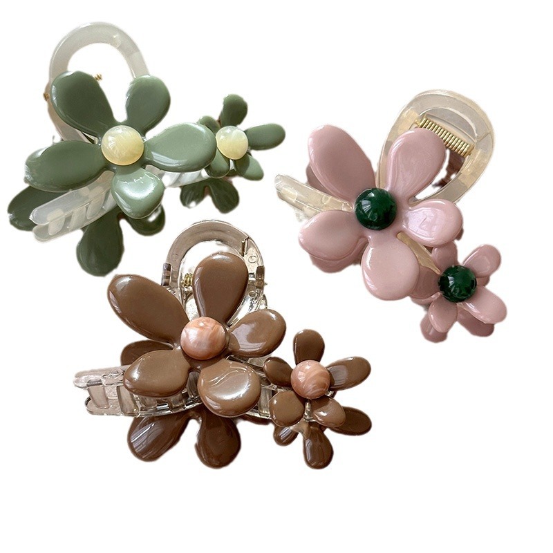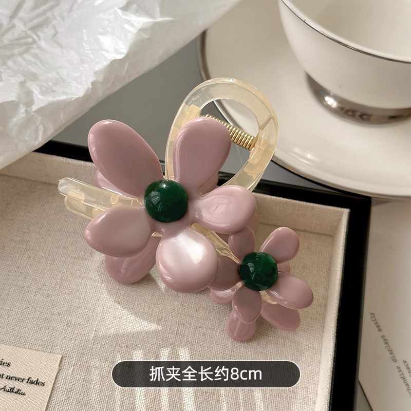 烟粉花卉~韩系花朵抓夹超仙ins风后脑勺鲨鱼夹甜美新款发卡女发饰