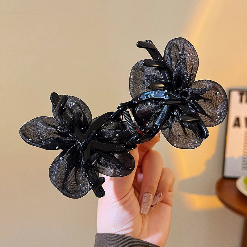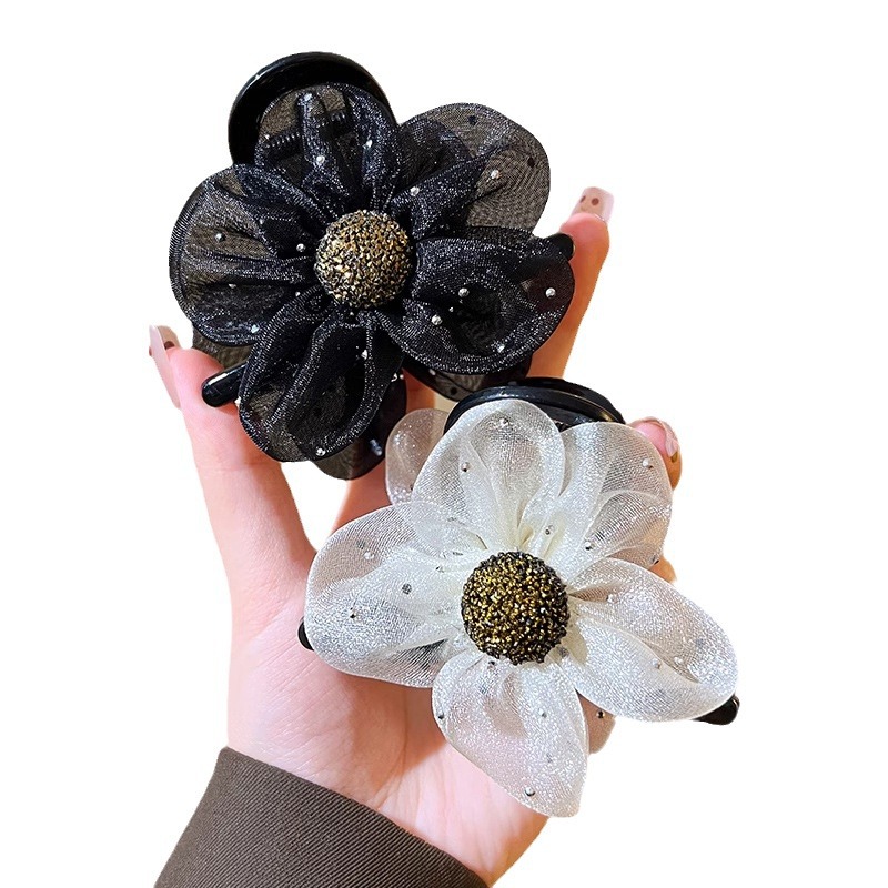网纱闪钻太阳花抓夹女时尚简约盘发鲨鱼夹子后脑勺高级感花朵发夹