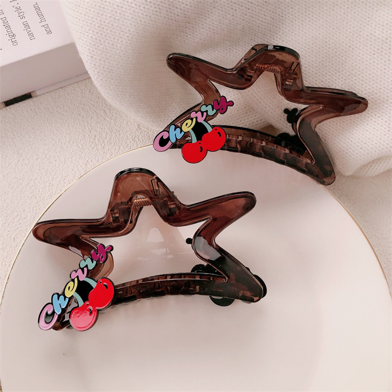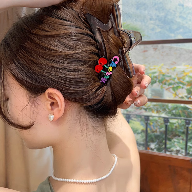 鲨鱼夹发夹女高级感彩色字母樱桃五角星头饰发夹后脑勺盘发发抓