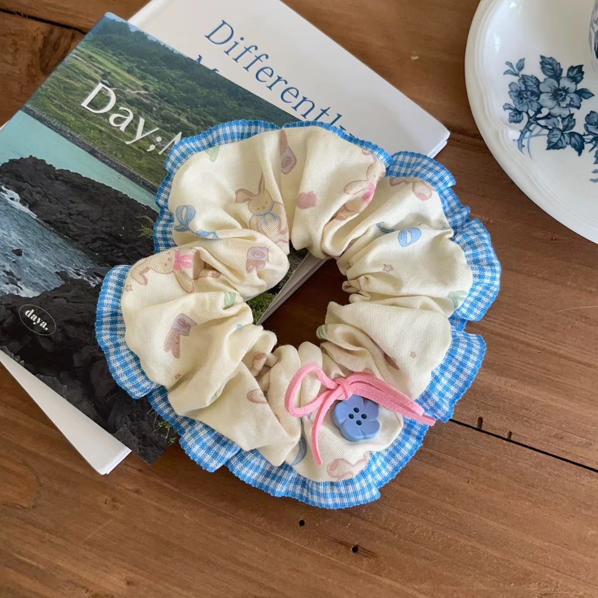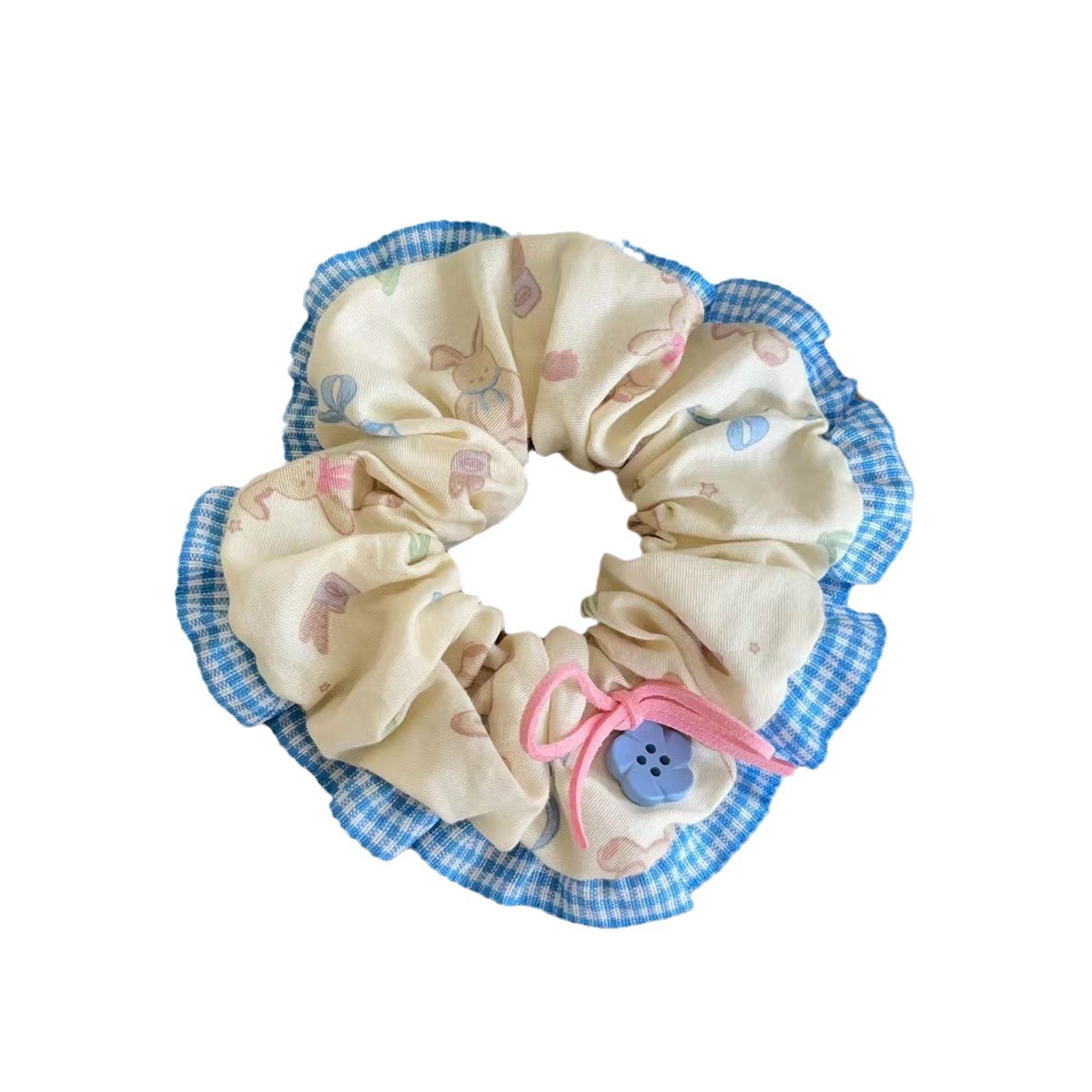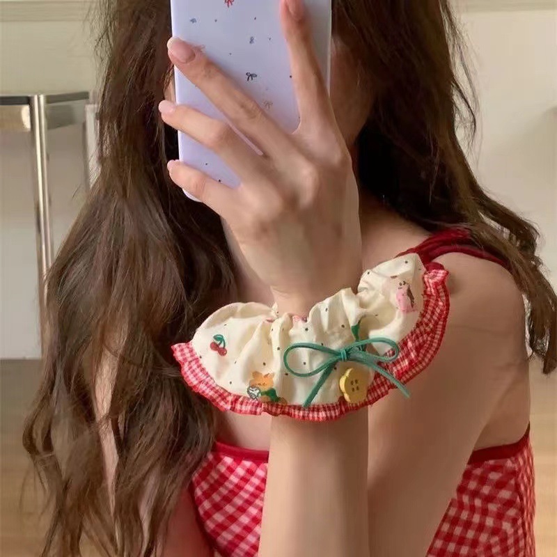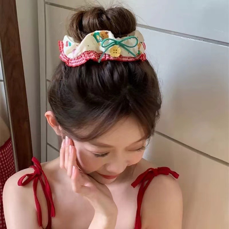 樱桃小熊!森系花朵纽扣大肠发圈高级感百搭发绳时尚气质头饰发饰