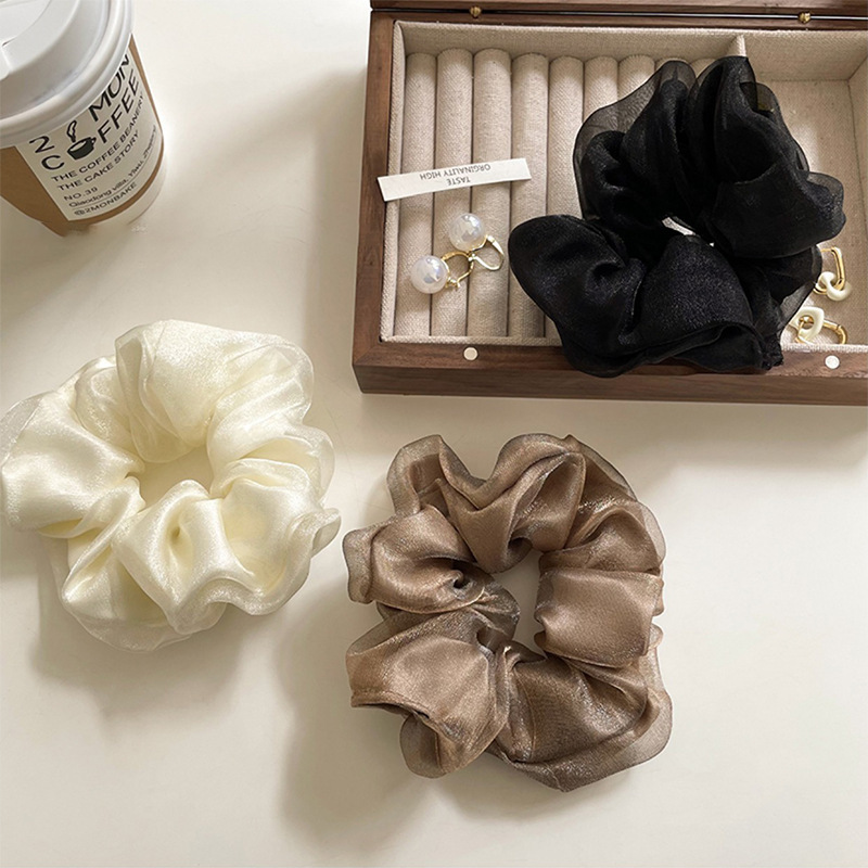 简约气质双层网纱大肠发圈头绳橡皮筋绑扎头发头花高级感夏季头饰