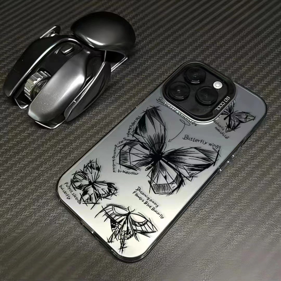 ins风线条蝴蝶适用于苹果12pro线条iPhone xsmax艺术13/14个性15