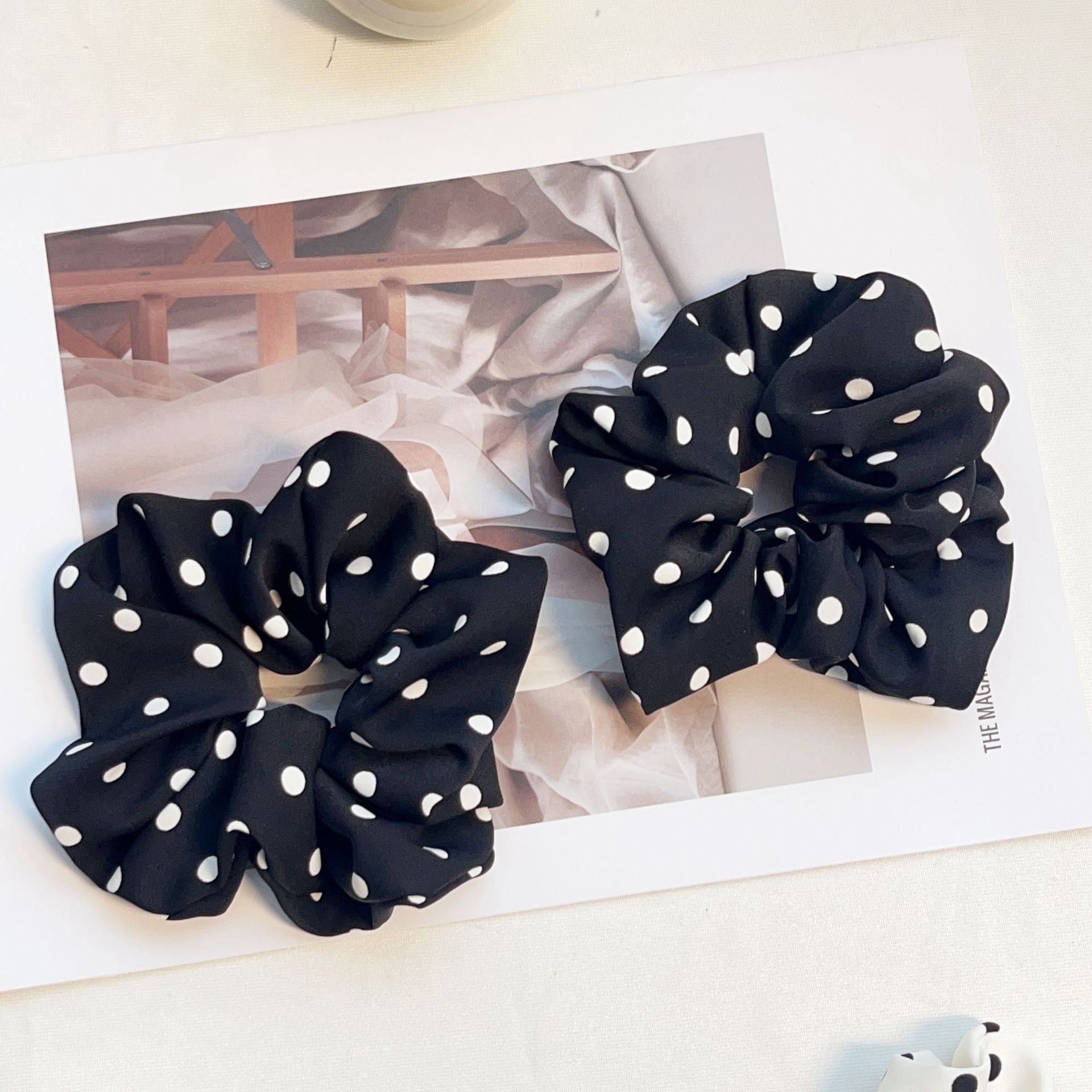 日韩简约奶油波点大肠发圈皮筋百搭褶皱布艺头绳小众高级发绳发饰