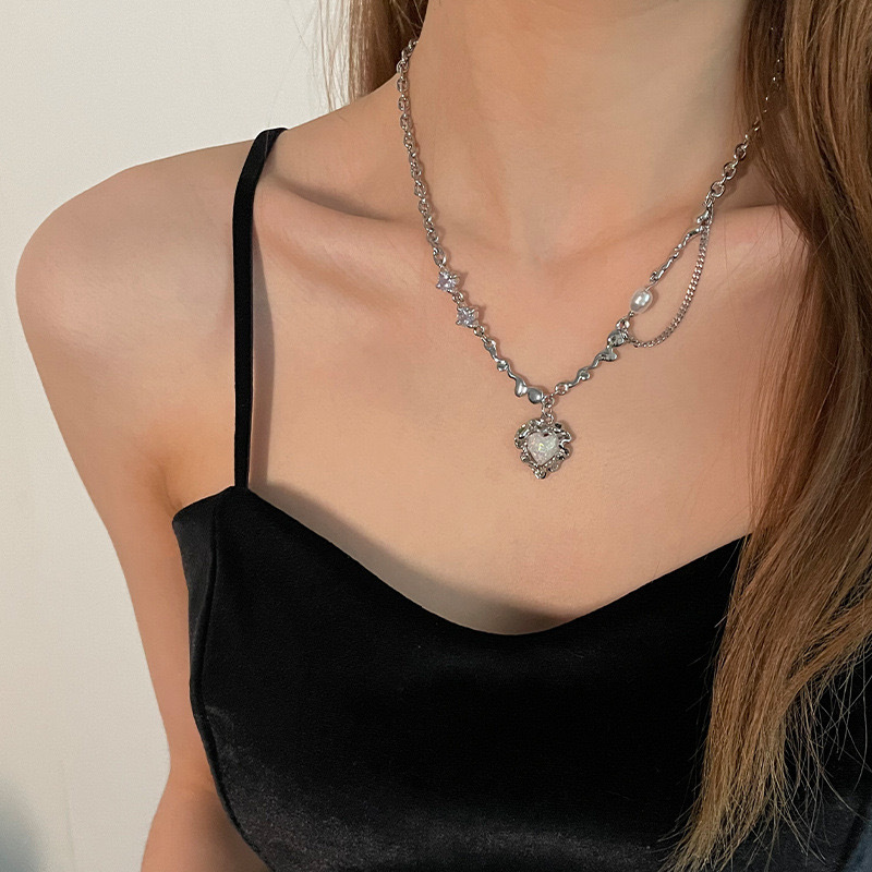 新品辣妹小众月光石爱心珍珠项链饰品女百搭精致高级感熔岩锁骨链