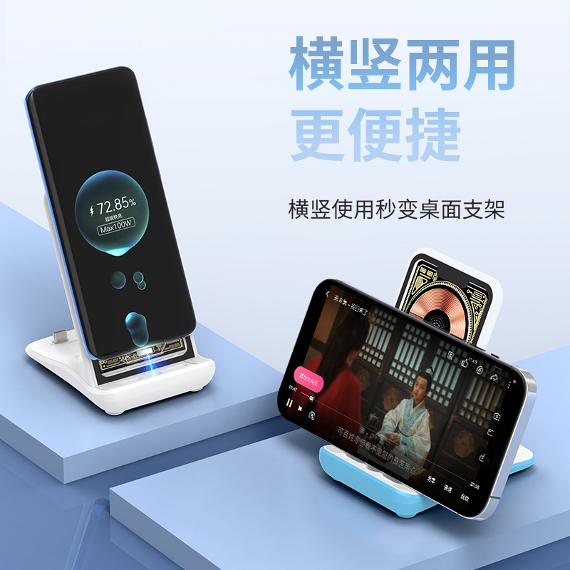 100W无线充电器懒人桌面多功能手机支架礼品磁吸立式快充无线充