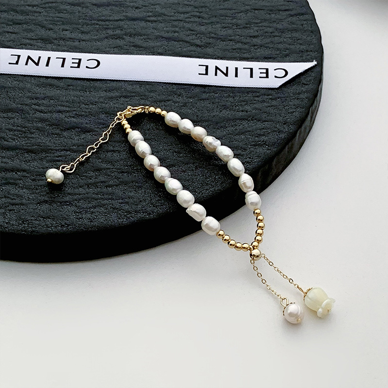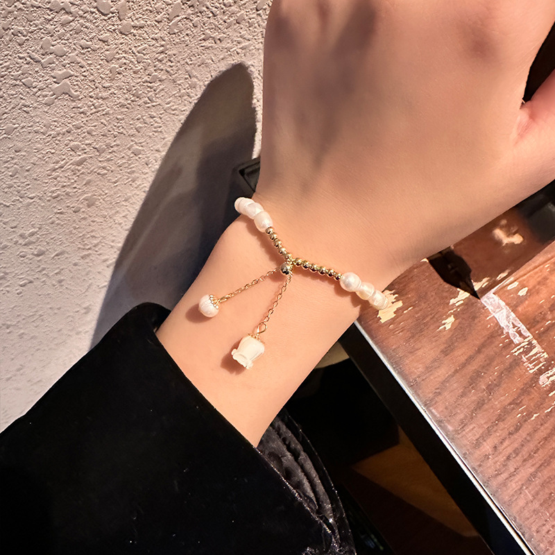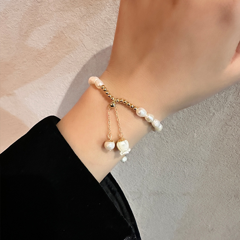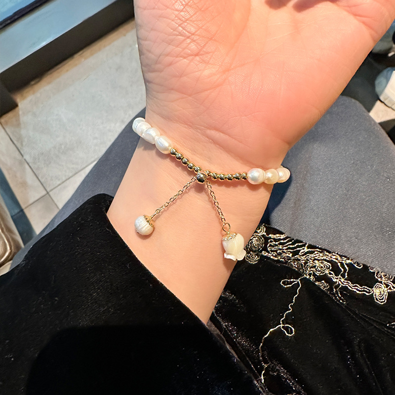法式复古天然淡水异形珍珠手链轻奢高级感小众铃兰花吊坠手环手串