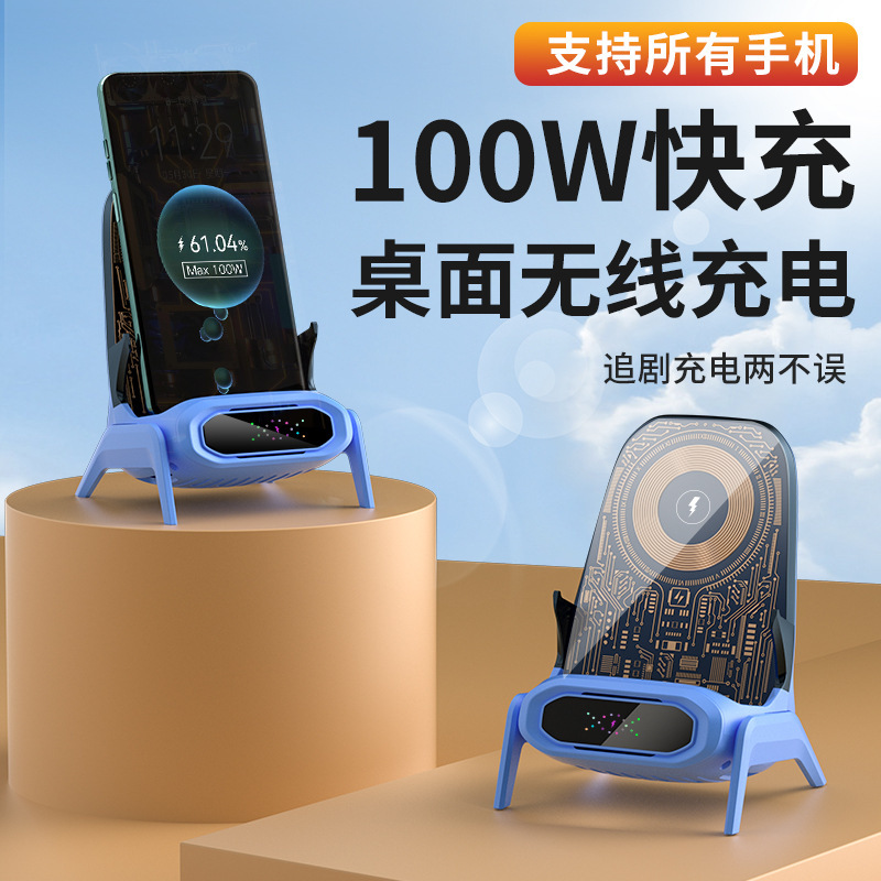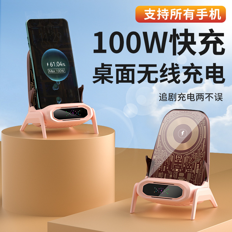 新款无线充电器支持所有手机桌面支架100W磁吸充横竖追剧自动感应