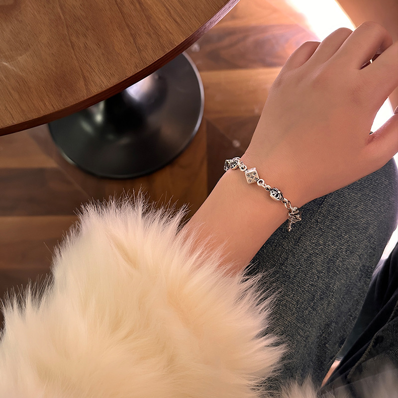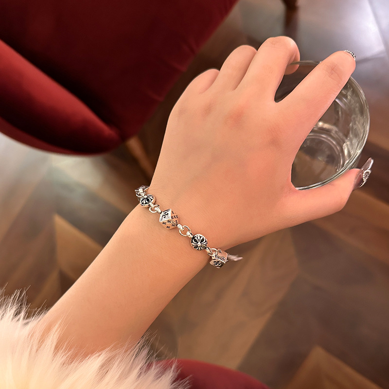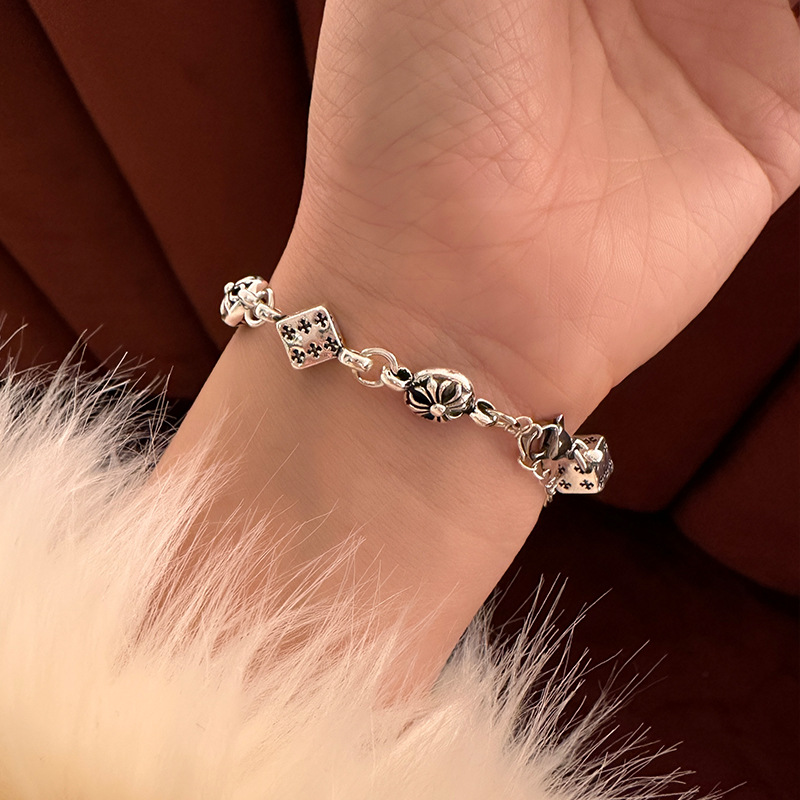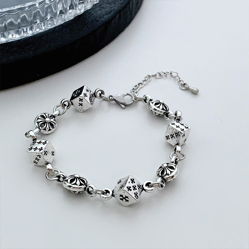 个性冷淡风做旧骰子十字架拼接手链小众高级感甜酷手环网红手饰潮