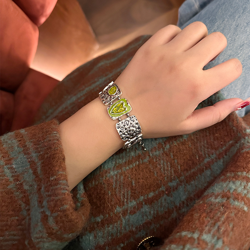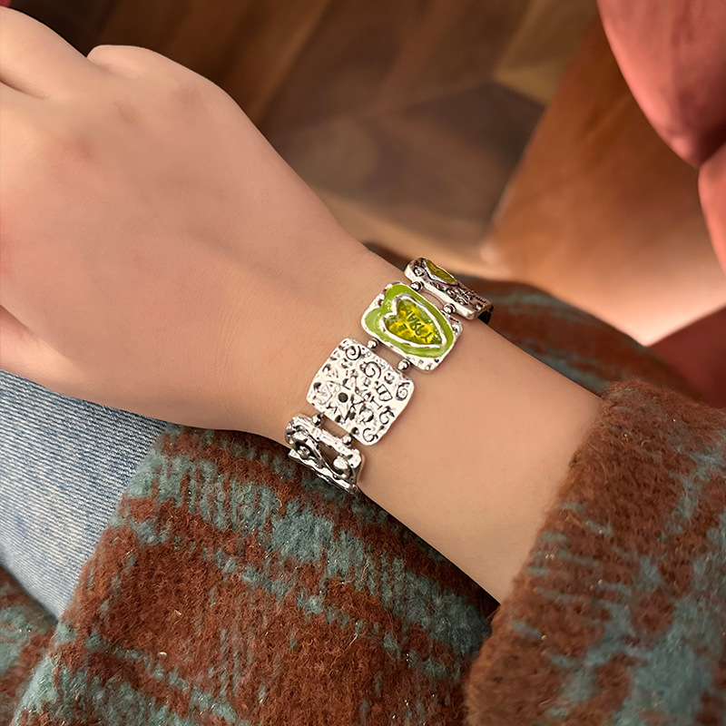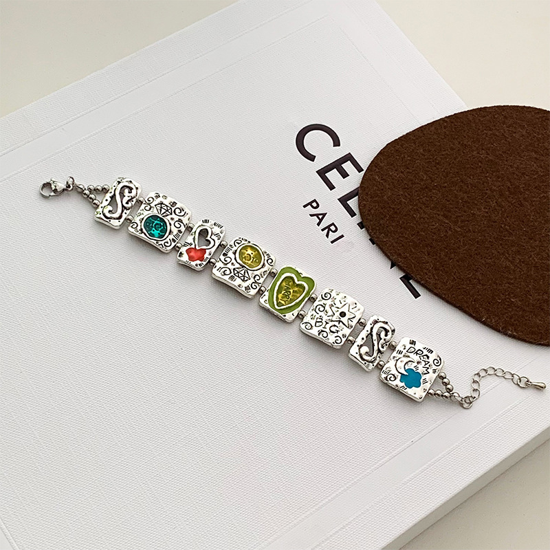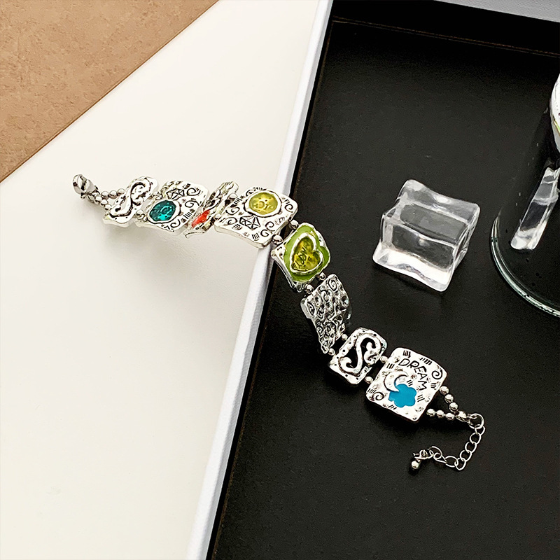 小众设计感浮雕彩色滴釉方块手链女个性Y2K短款手饰网红夸张配饰