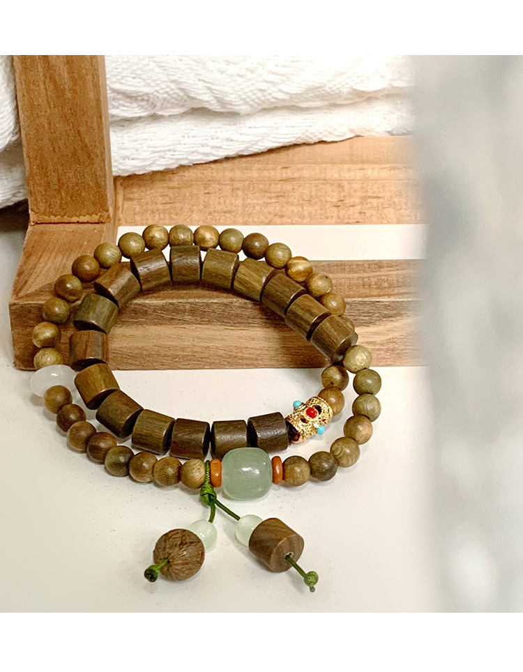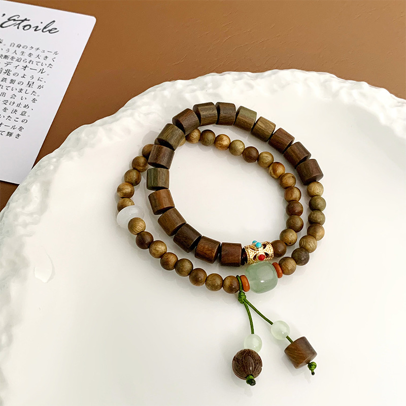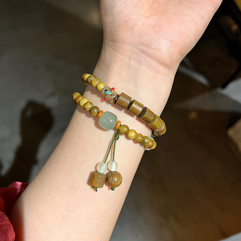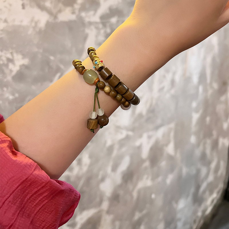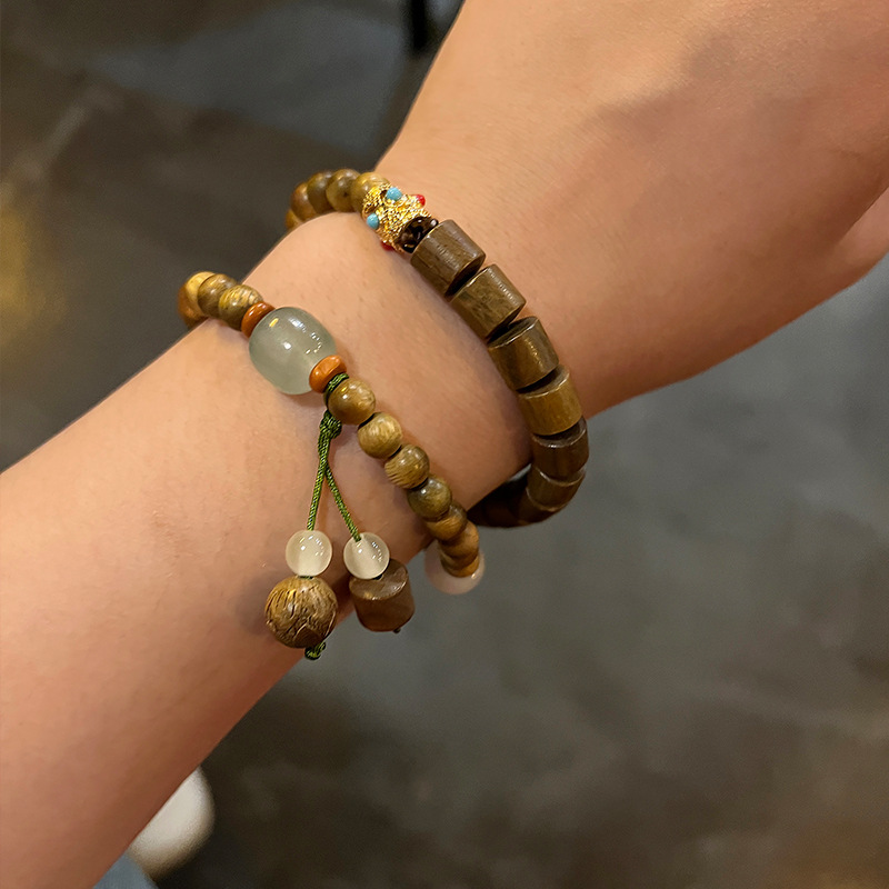香香的绿檀木手串沉香高级感双层手链新中式民族风复古情侣手饰品