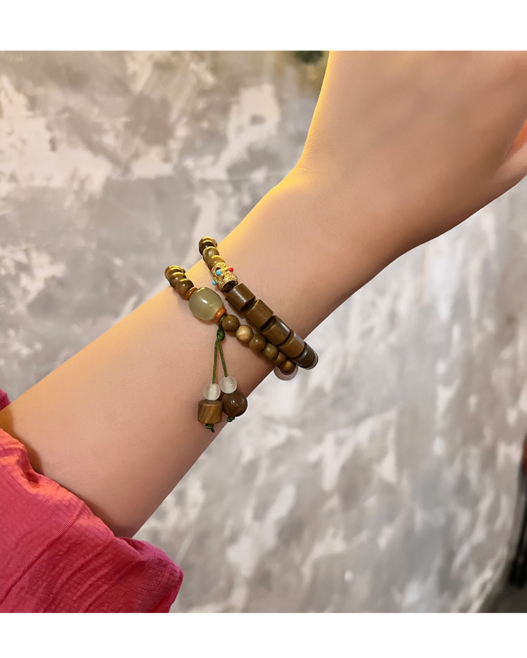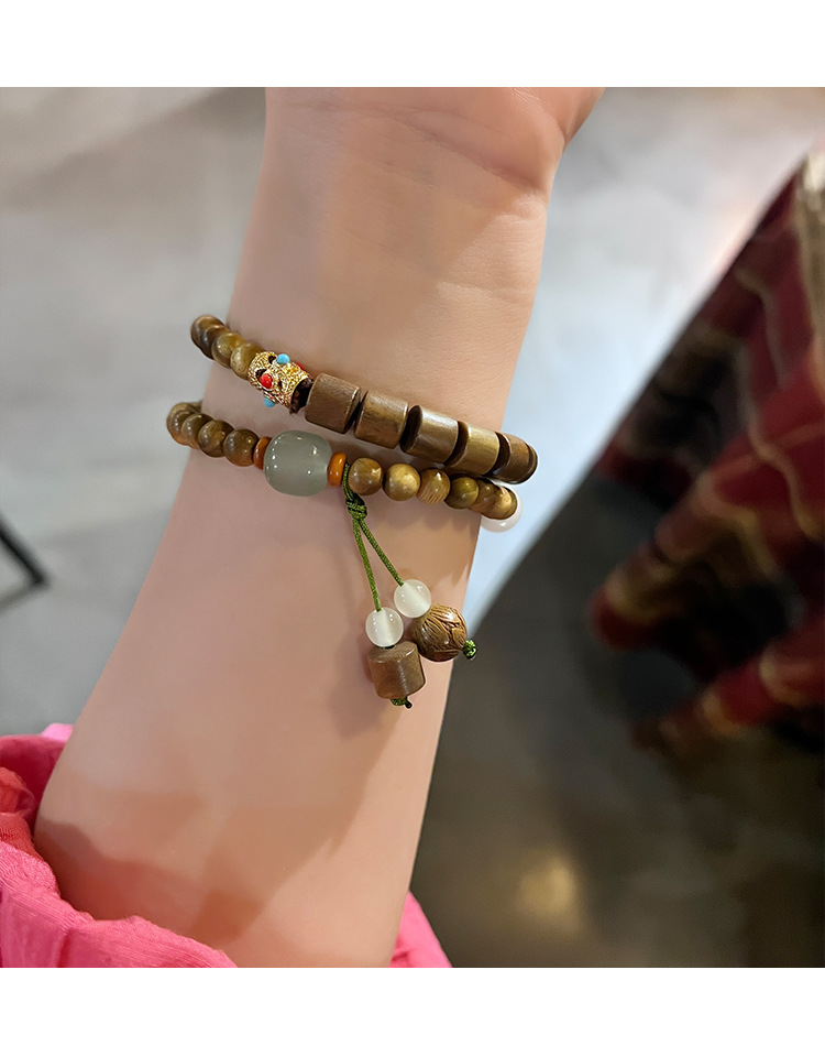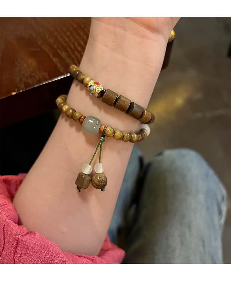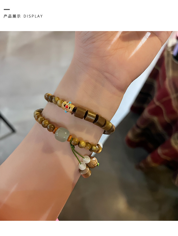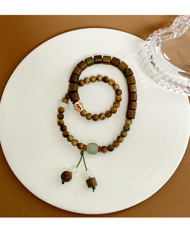 香香的绿檀木手串沉香高级感双层手链新中式民族风复古情侣手饰品