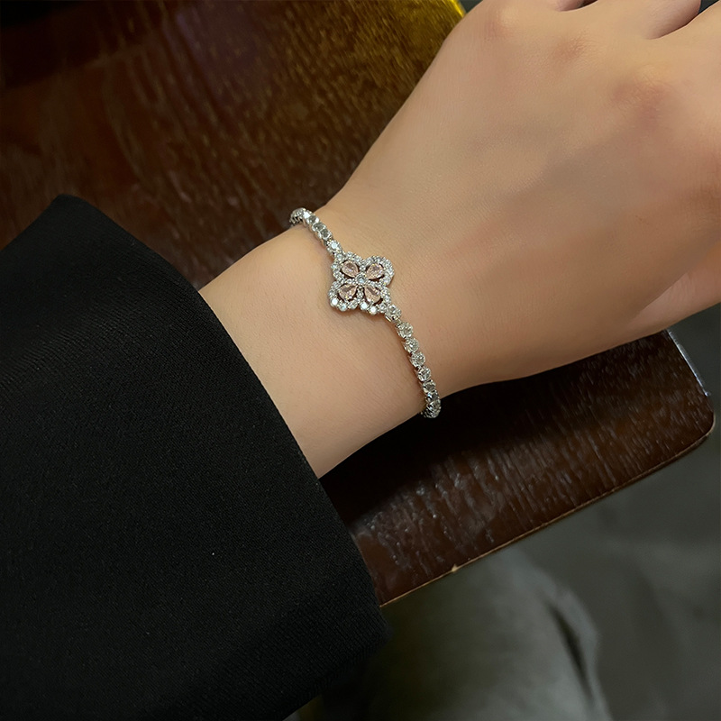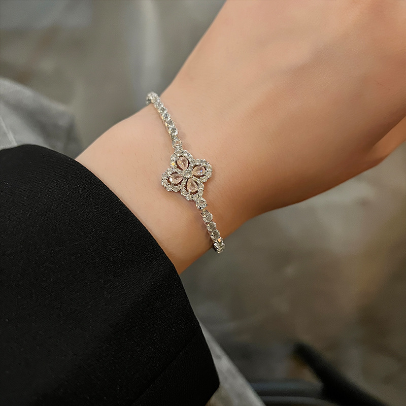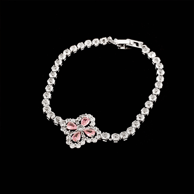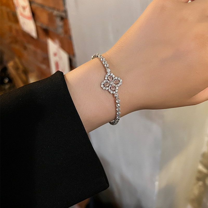 气质轻奢甜美粉色锆石花朵手链女气质百搭高级感满钻手饰时尚百搭