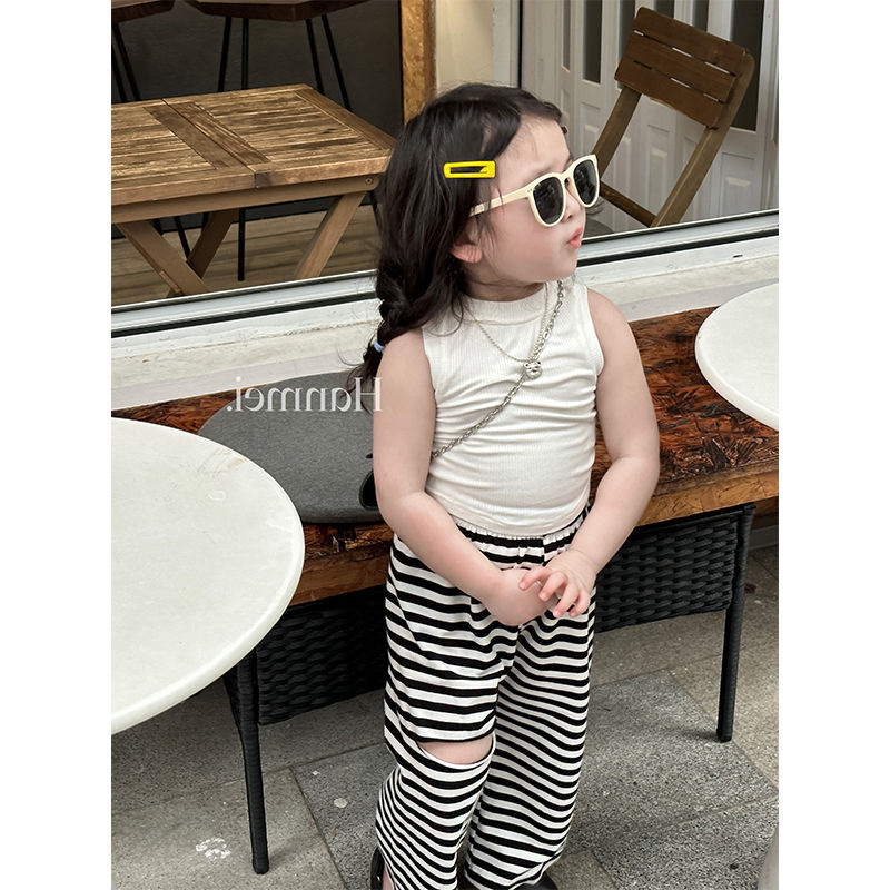 女童夏装两件套宝宝洋气儿童个性潮牌韩版网红纯色背心条纹阔腿裤