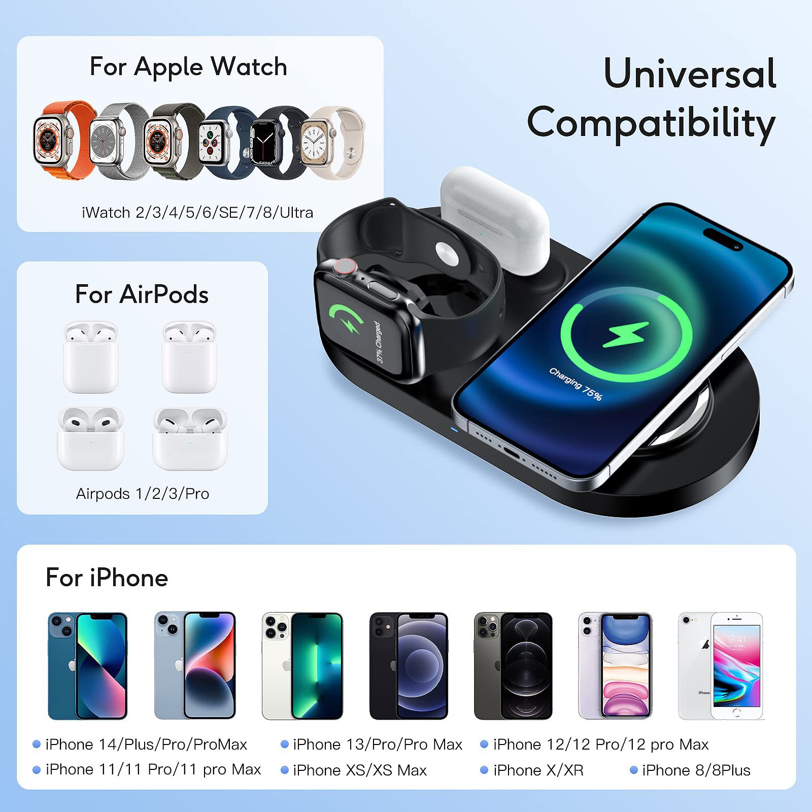 跨境新款Magsafe磁吸三合一无线充电器手表无线充多功能手机支架