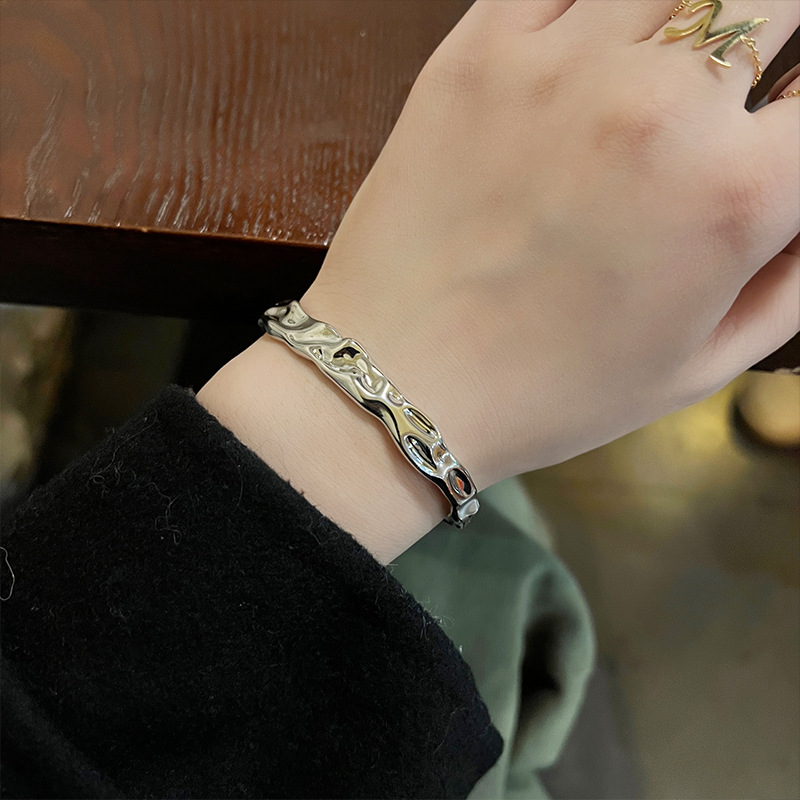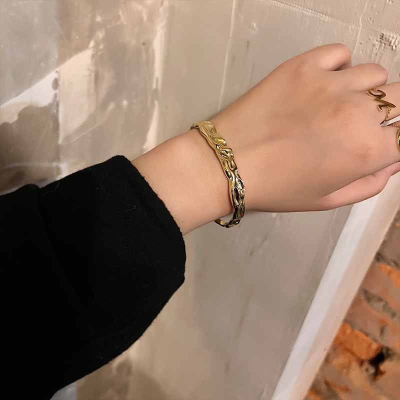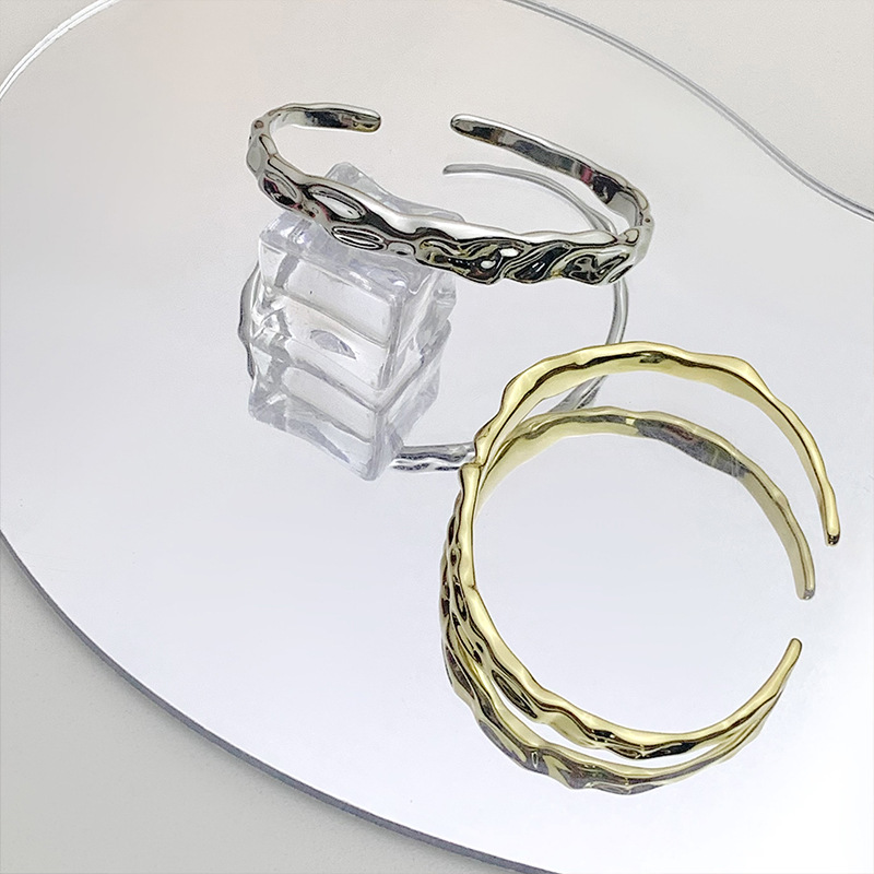小众不规则金属褶皱肌理开口手环 ins冷淡风高级感个性手镯配饰潮