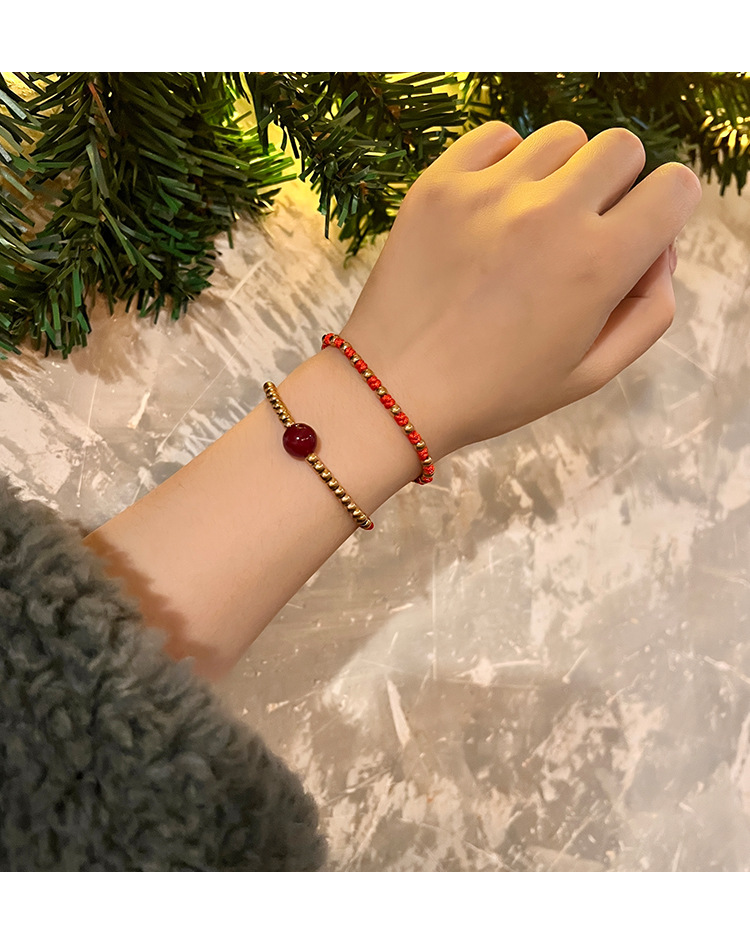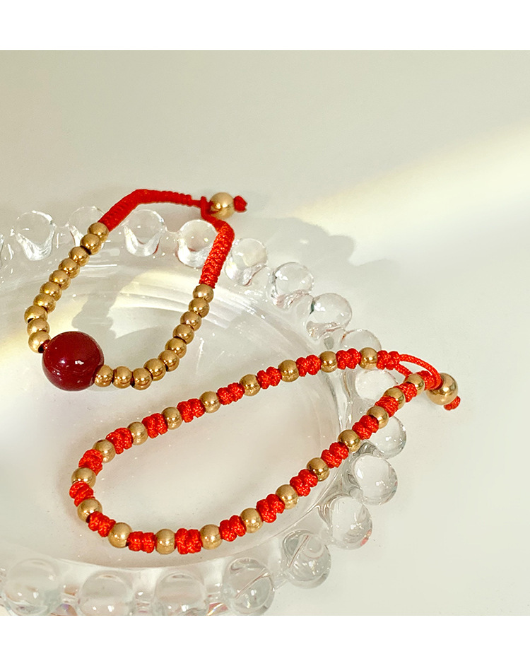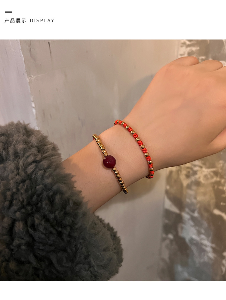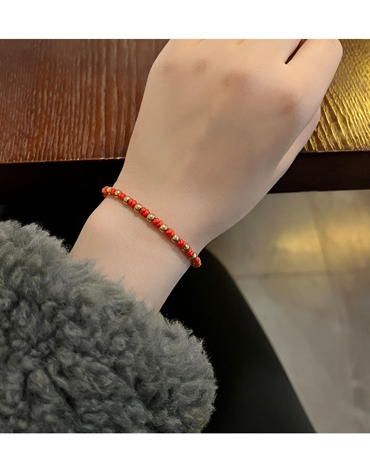 转运珠红绳手链时尚个性百搭本命年手工编织红绳手环红色新年配饰