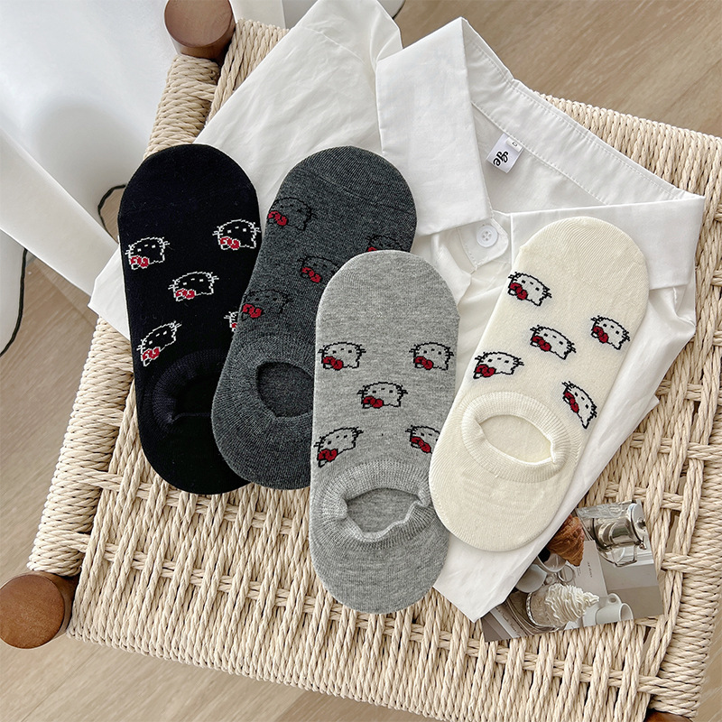 2025春夏新款女袜韩系卡通小猫提花无骨透气船袜防掉跟潮k猫