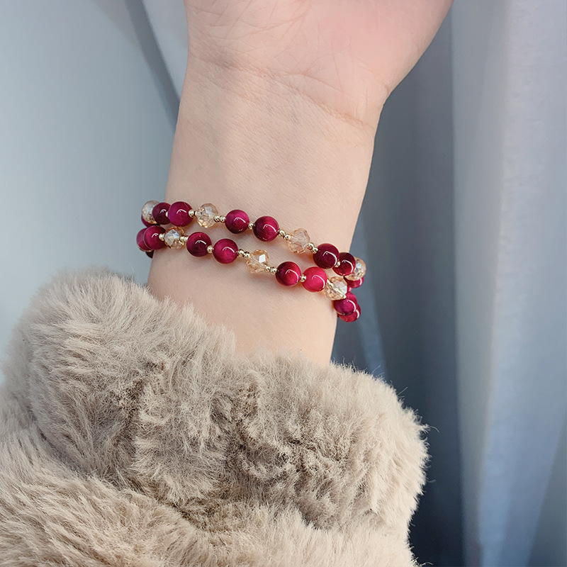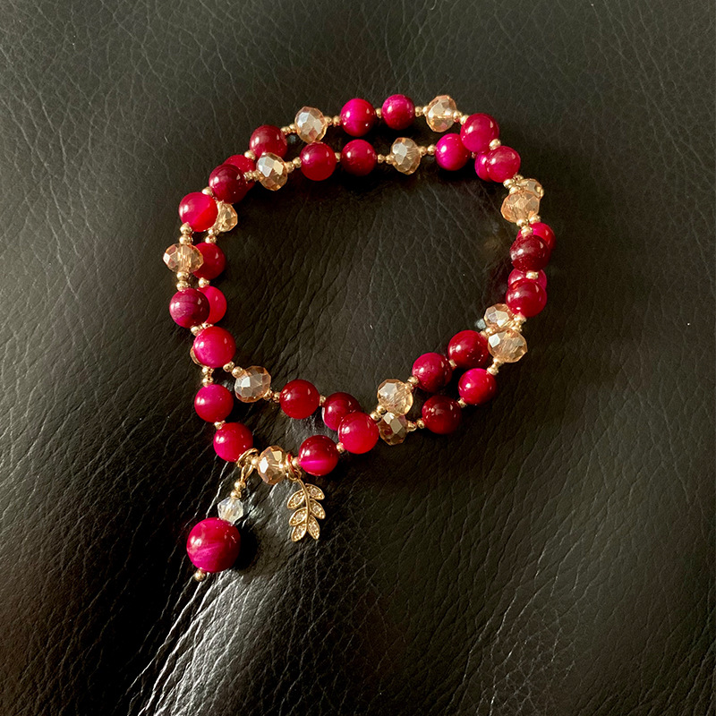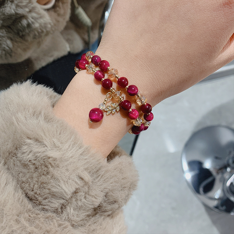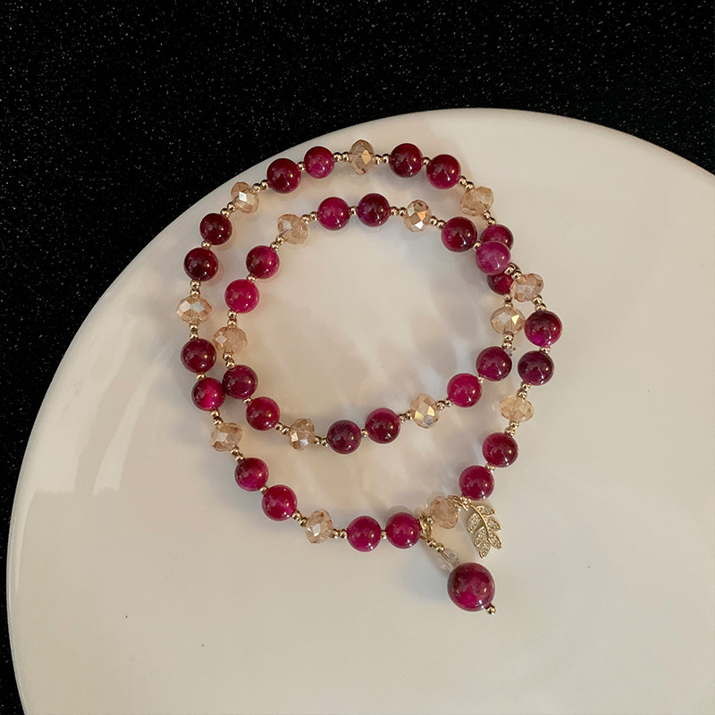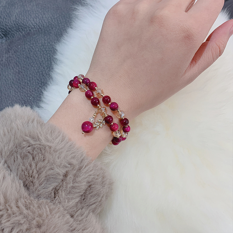 日韩气质森系水晶串珠手链 ins小众设计树叶吊坠多层手串闺蜜手饰