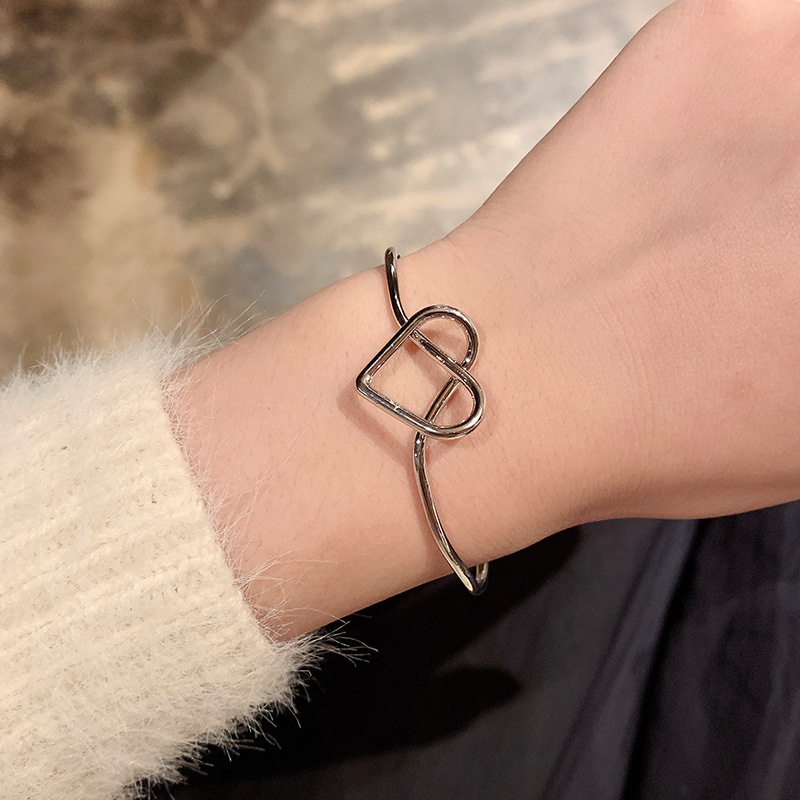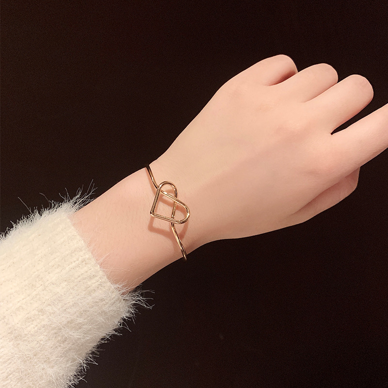 简约百搭几何线条镂空爱心手镯新款潮网红个性时尚开口手饰品