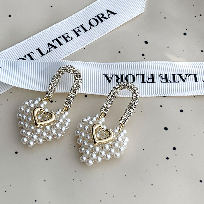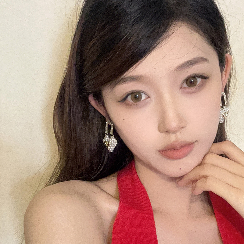 温柔气质爱心珍珠耳环小众设计法式复古耳环年新款百搭耳饰女