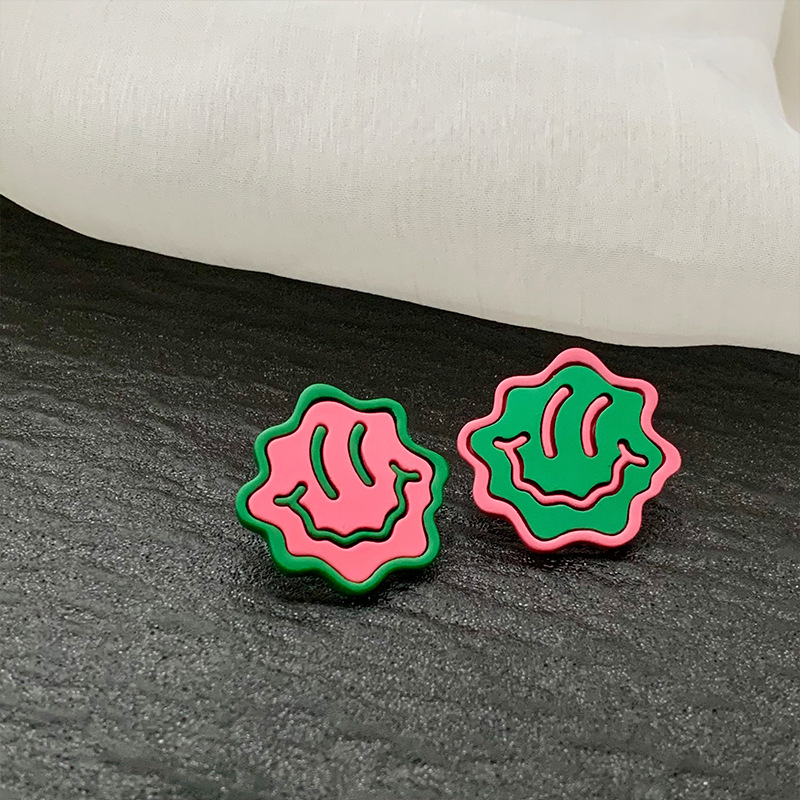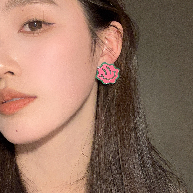 甜酷可爱圣诞撞色笑脸耳钉个性少女几何耳环小众设计感百搭耳饰潮