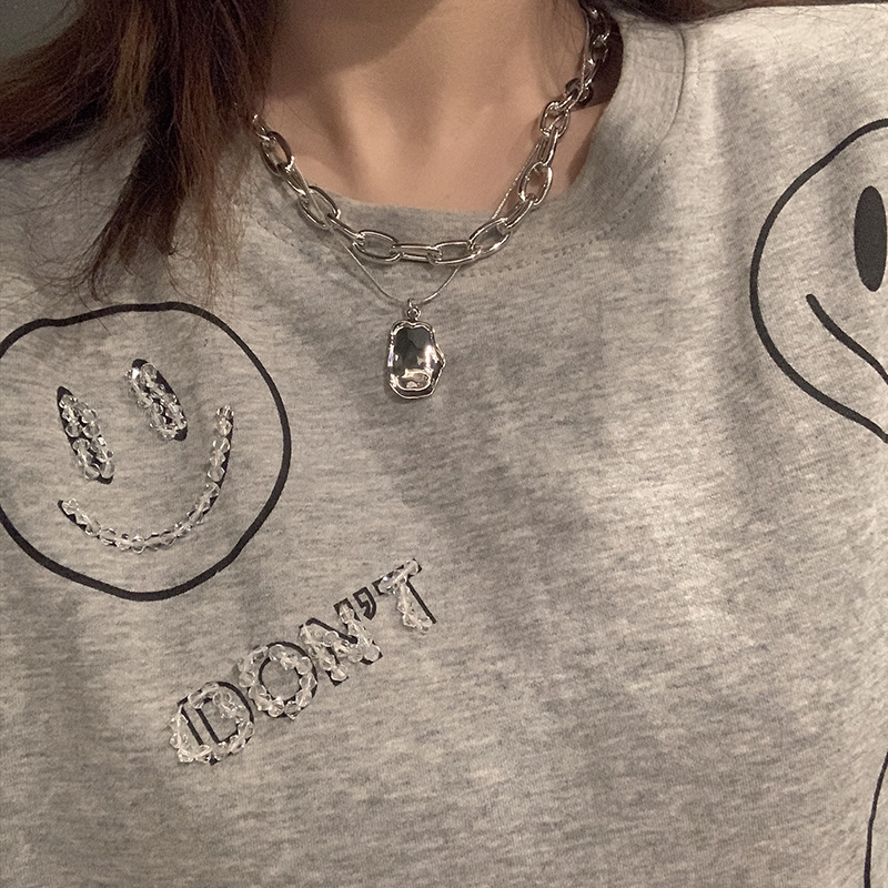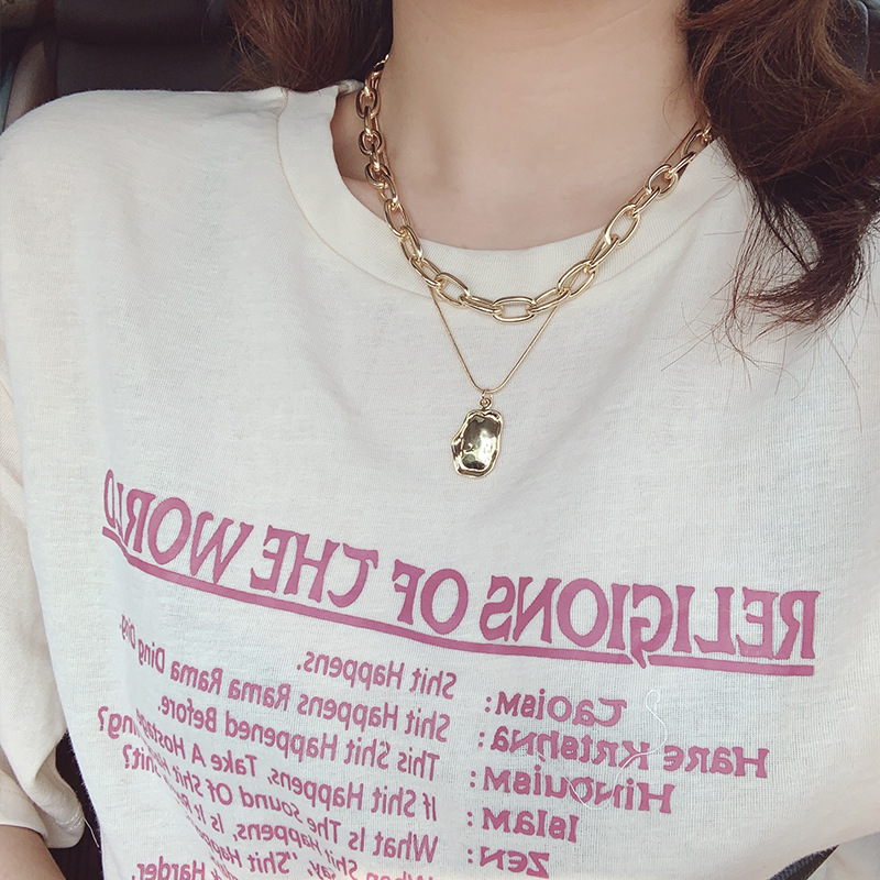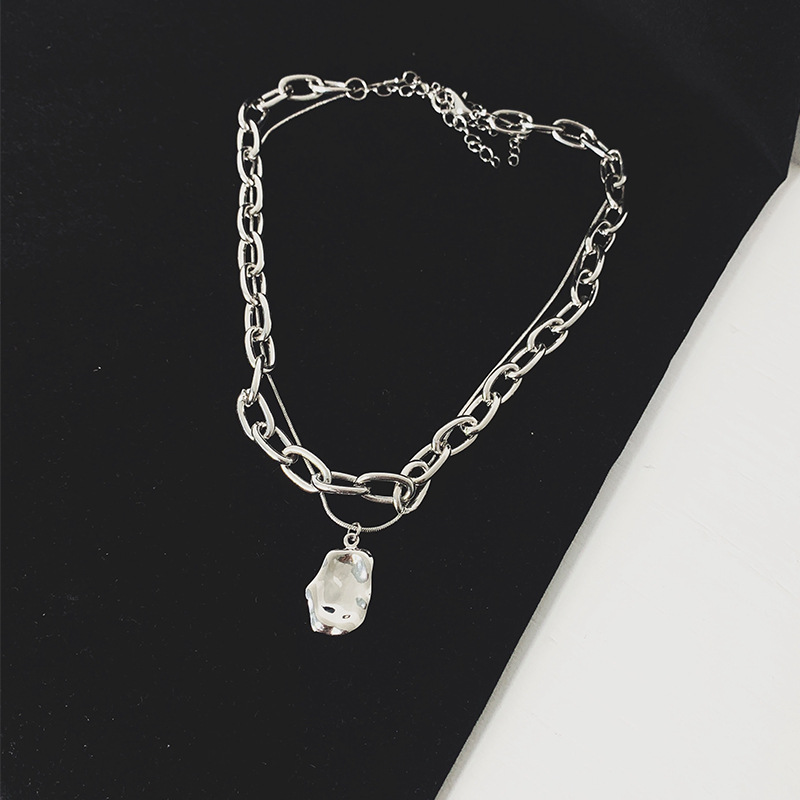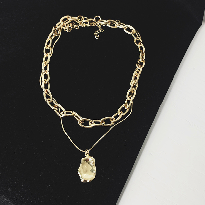 双层链条几何吊坠项链小众设计感复古网红颈链叠戴choker锁骨链女