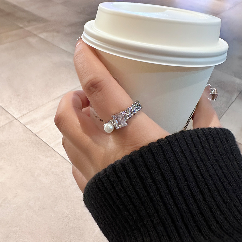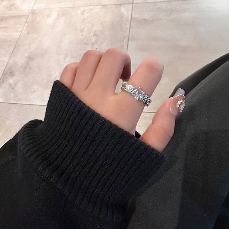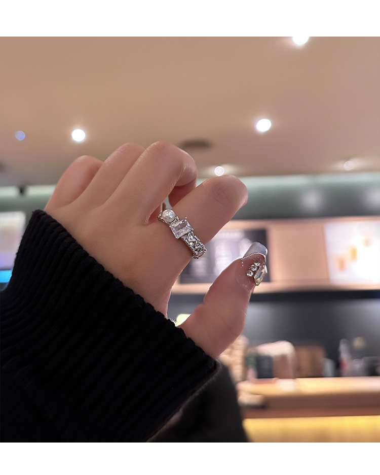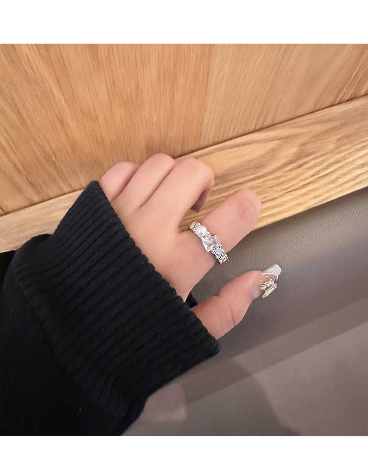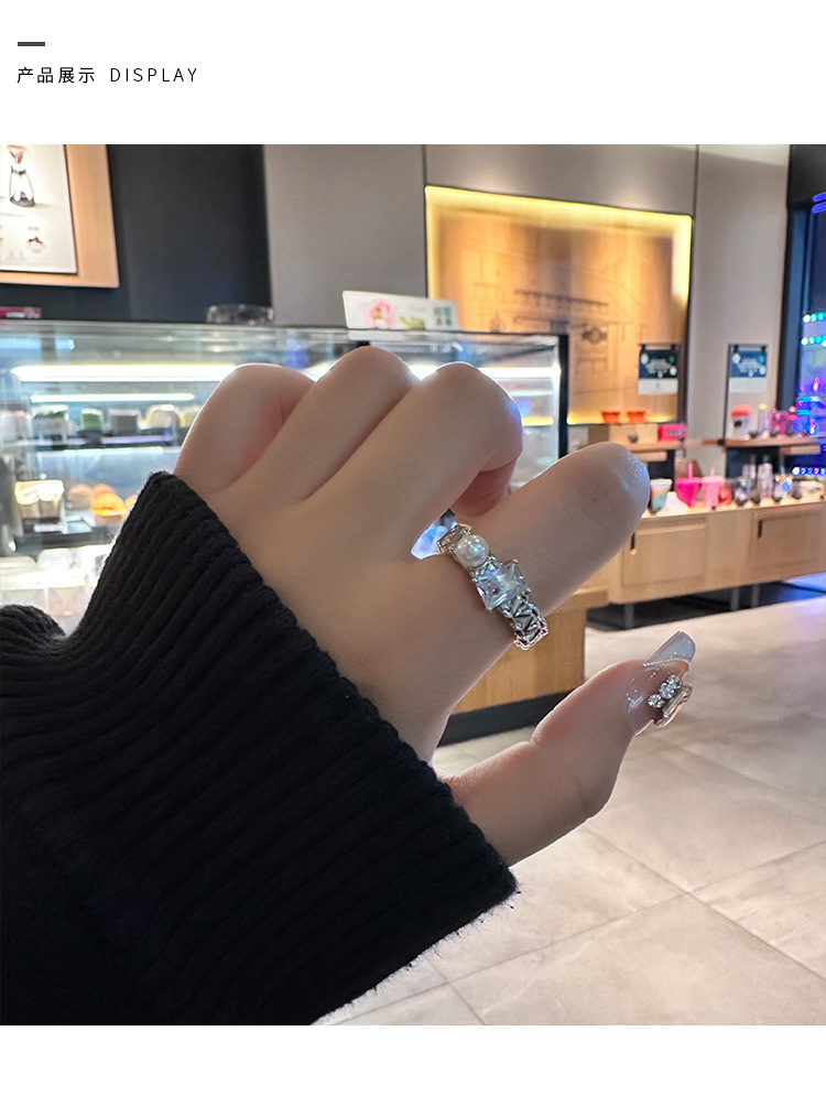 年新款气质珍珠锆石戒指女小众高级感轻奢开口指环个性配饰潮