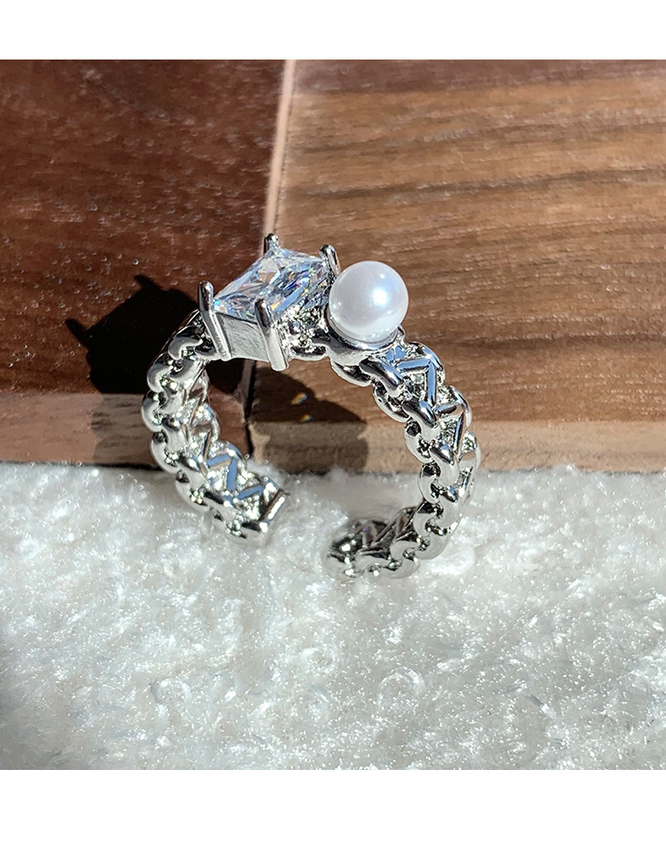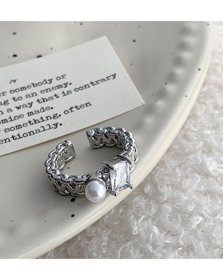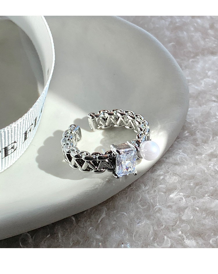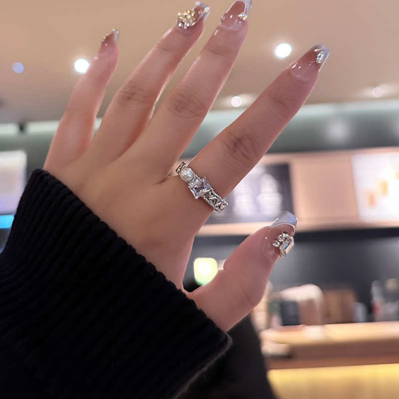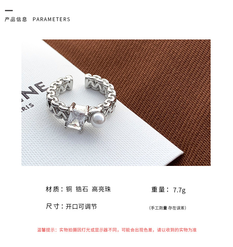 年新款气质珍珠锆石戒指女小众高级感轻奢开口指环个性配饰潮
