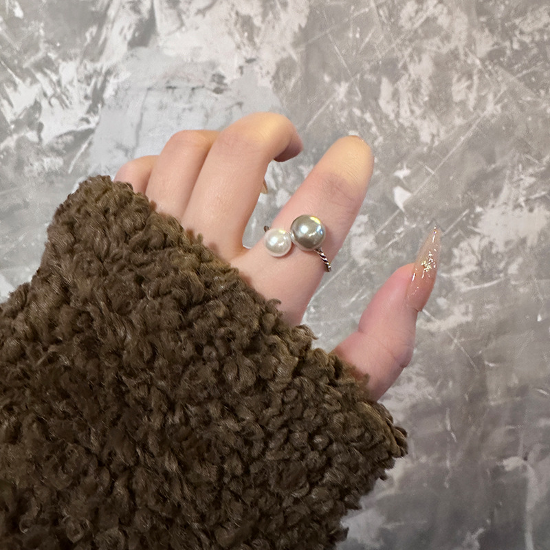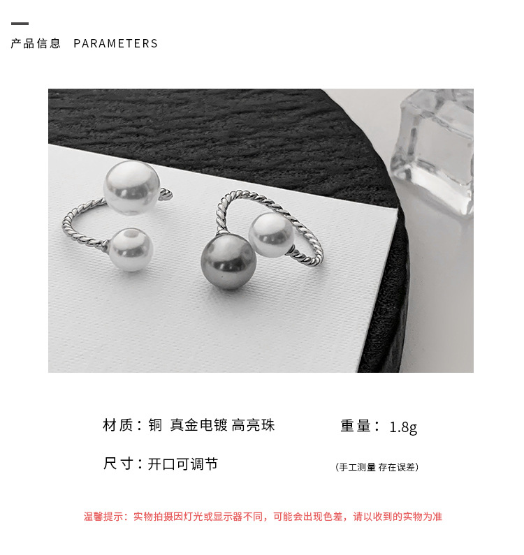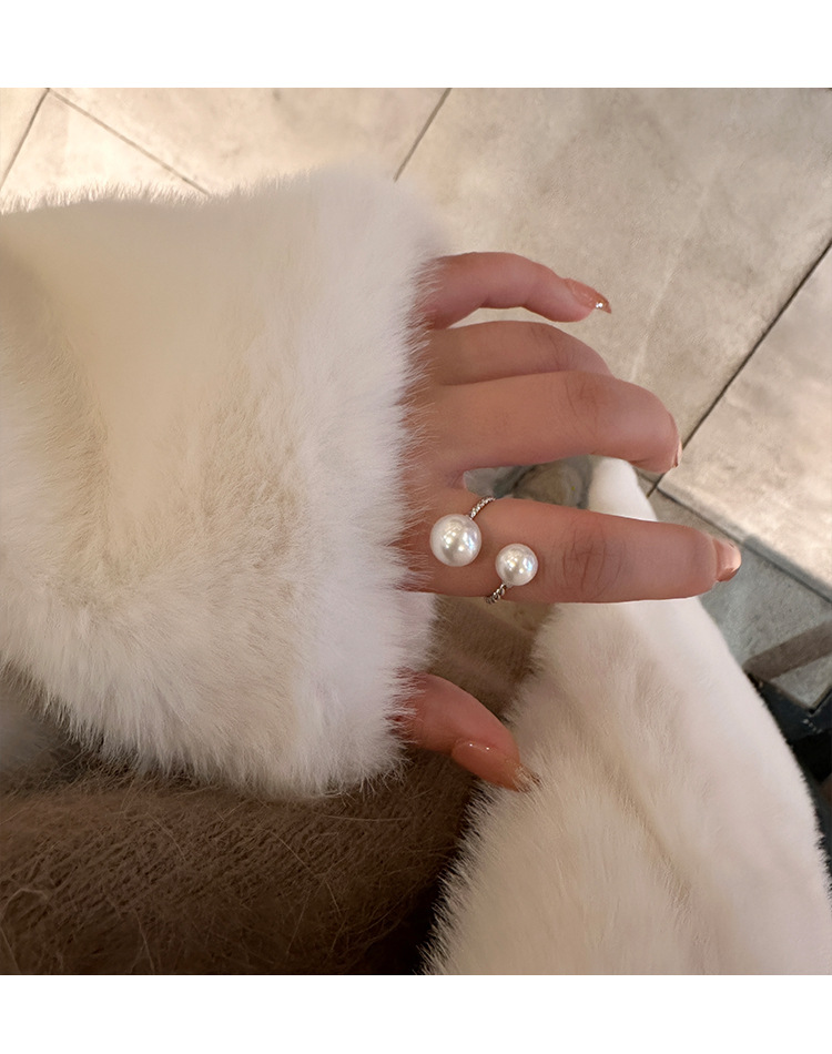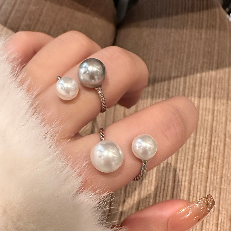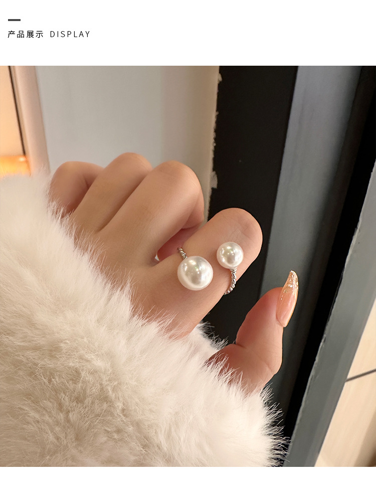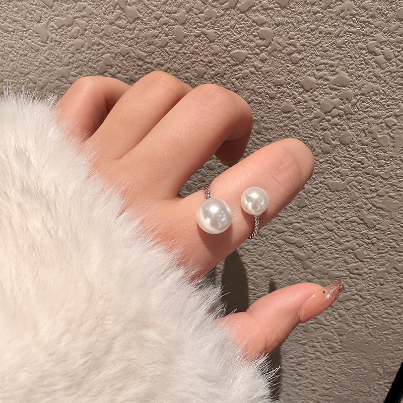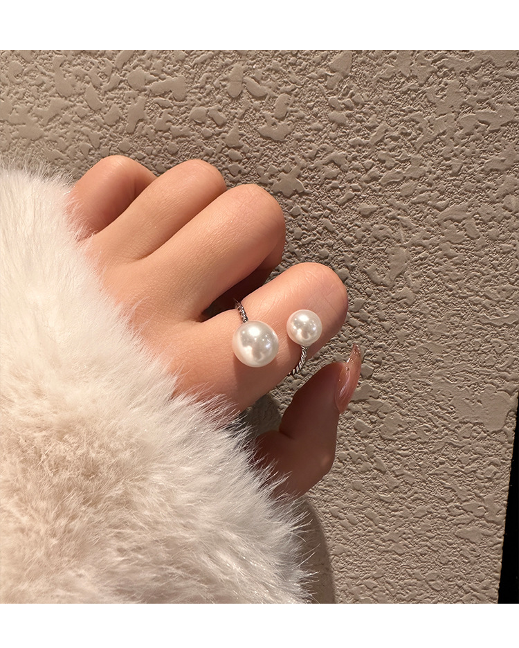 简约气质大小珍珠戒指高级感交叉指环小众设计开口可调节食指配饰