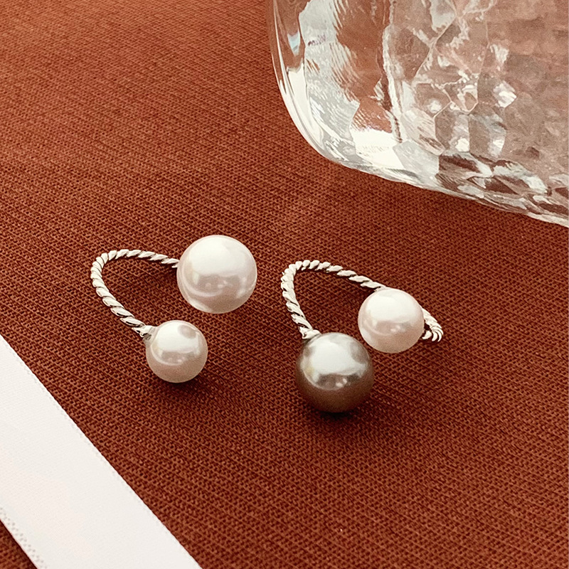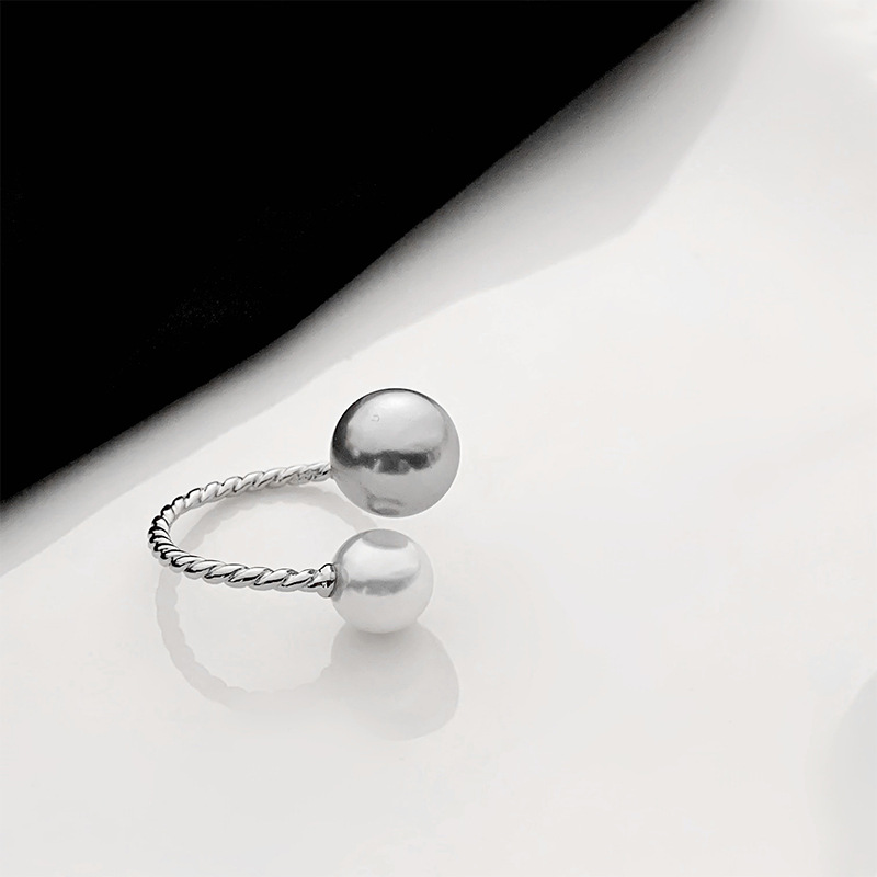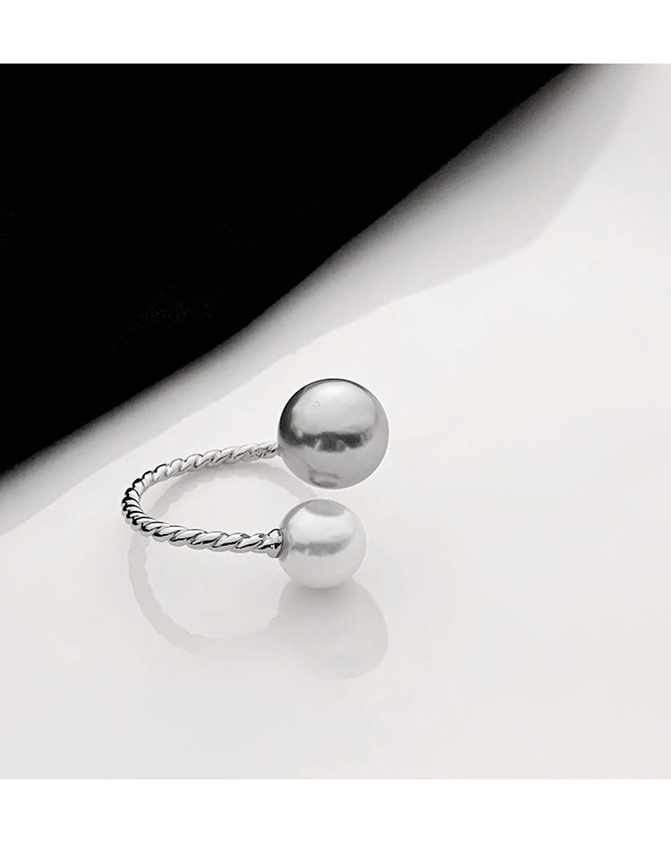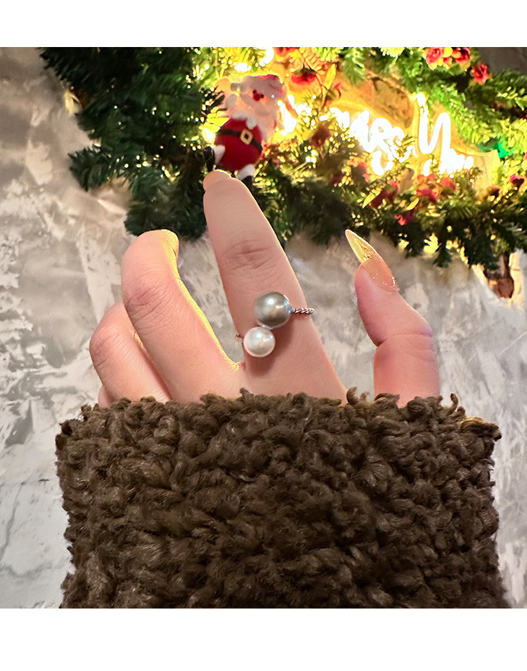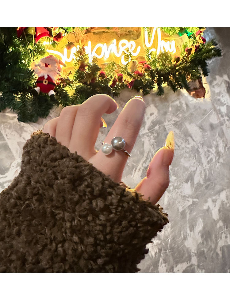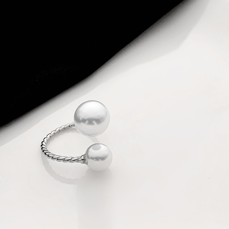 简约气质大小珍珠戒指高级感交叉指环小众设计开口可调节食指配饰