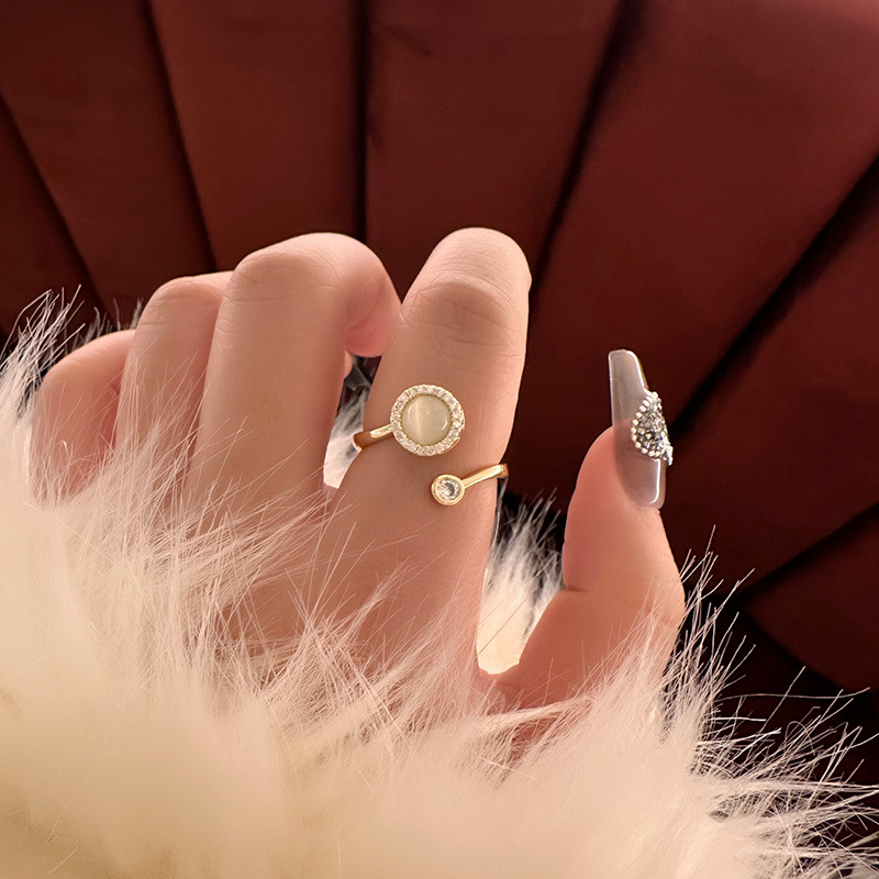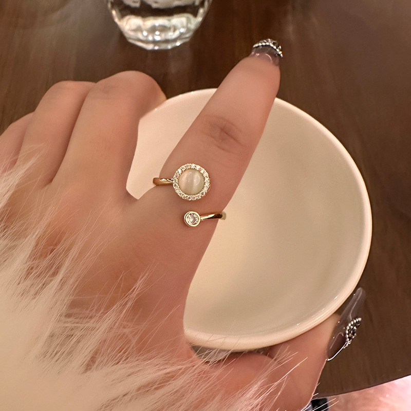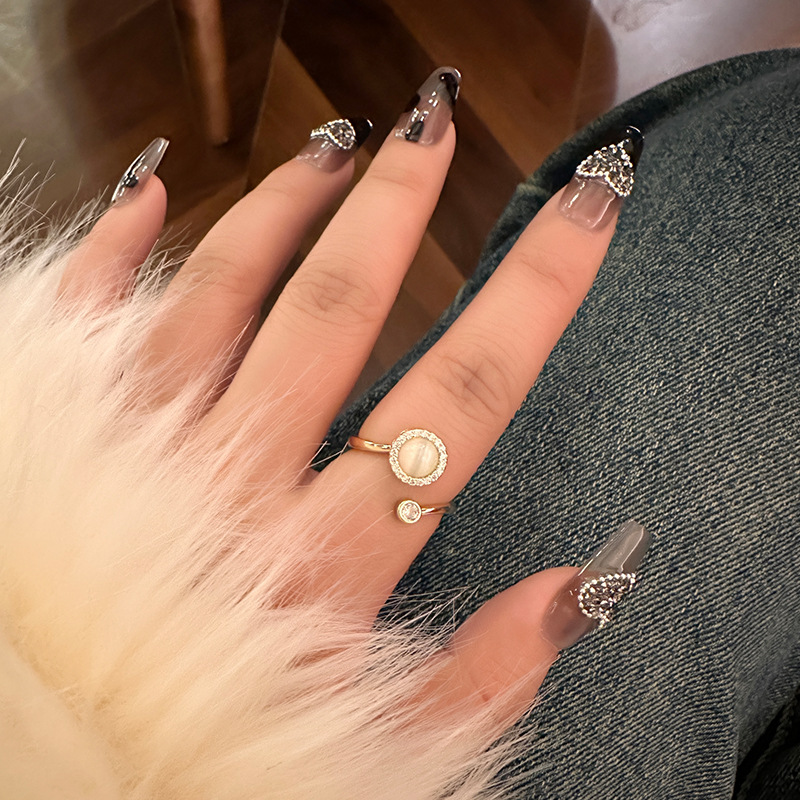 可旋转猫眼石转运戒指轻奢冷淡风小众设计感指环高级感气质配饰女