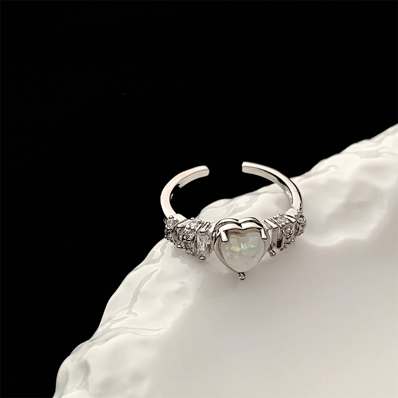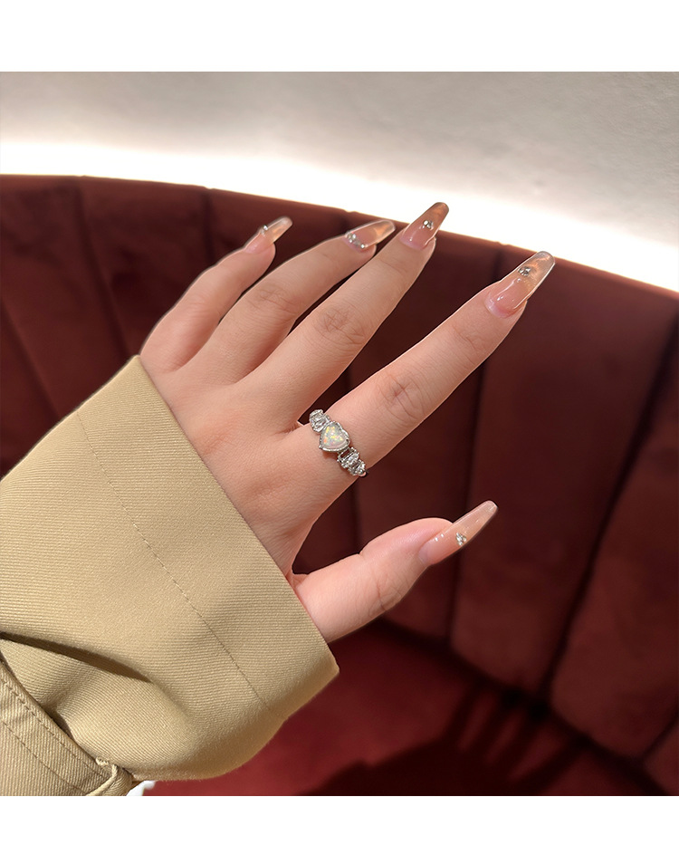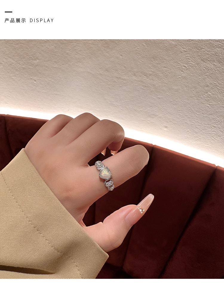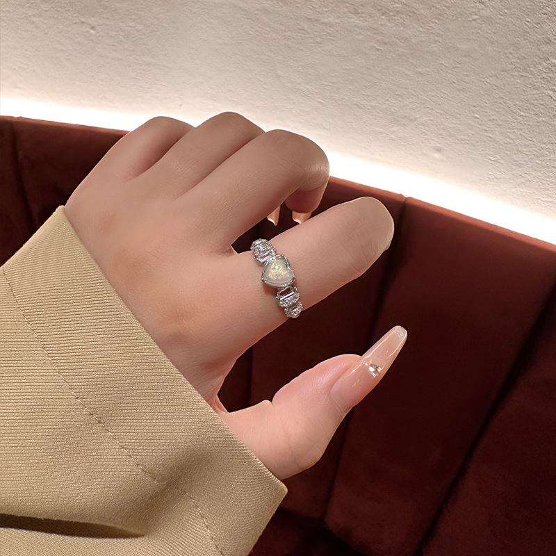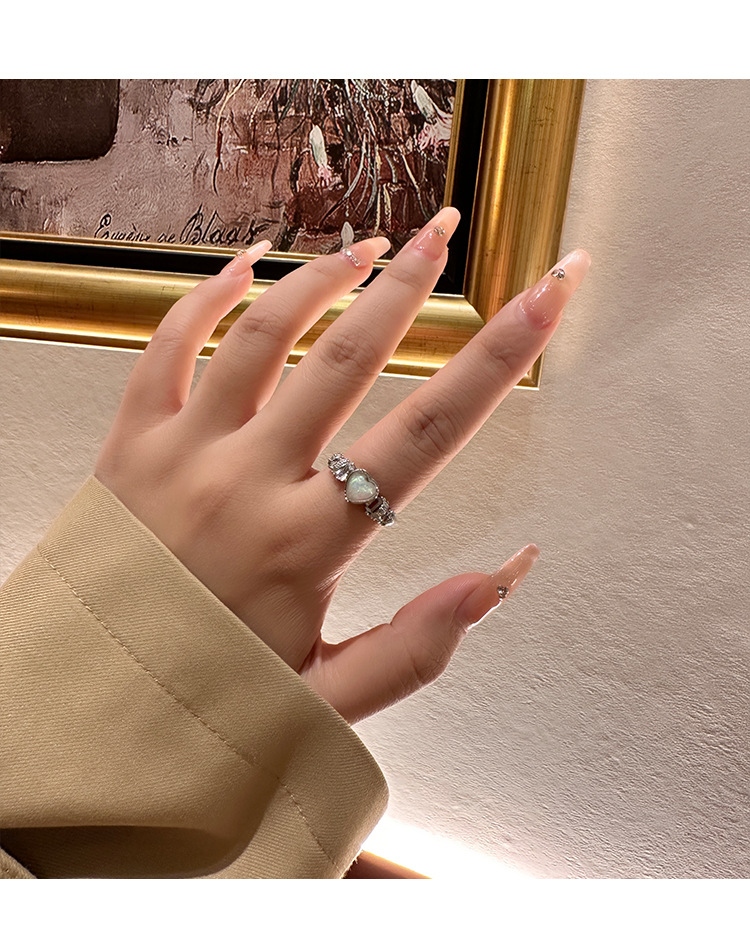 小众气质爱心欧泊石戒指女 ins冷淡风链条锆石开口食指戒百搭戒子