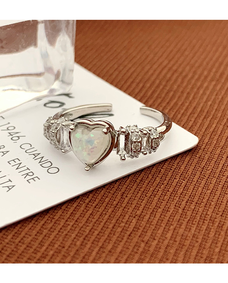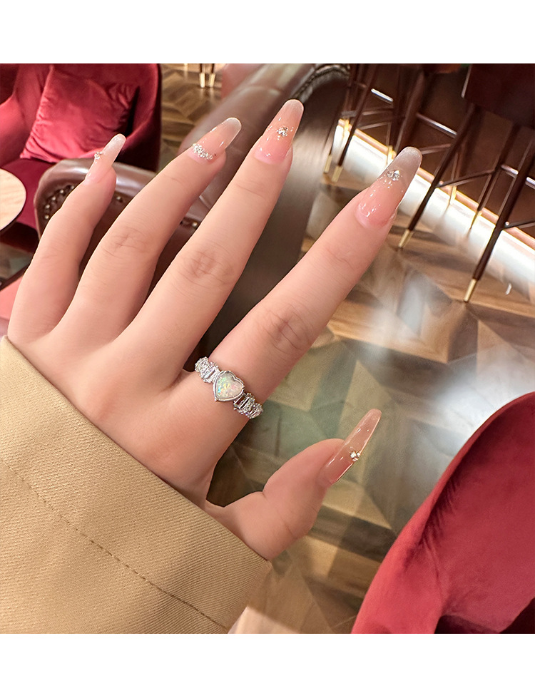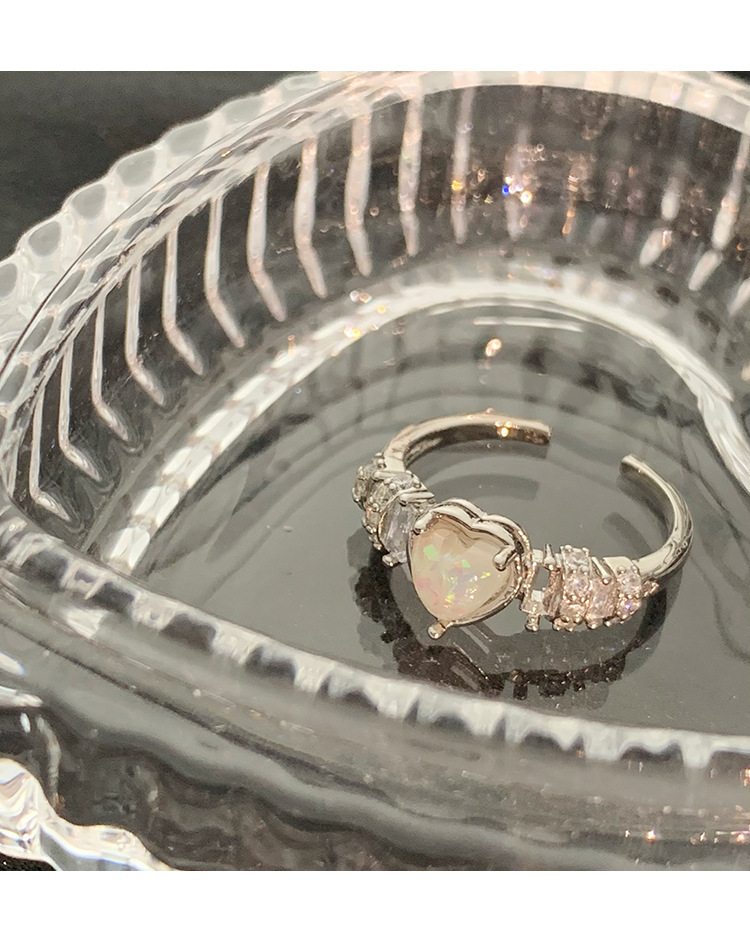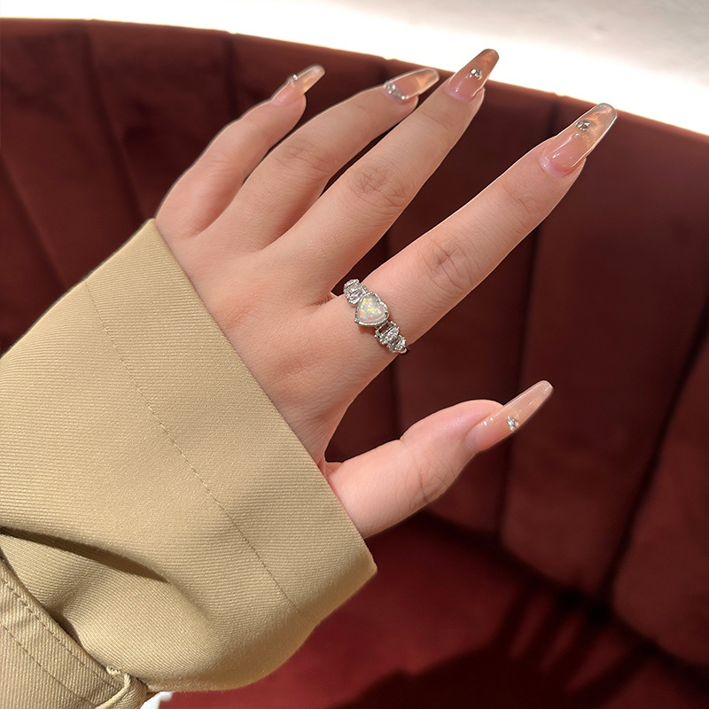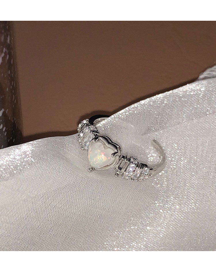 小众气质爱心欧泊石戒指女 ins冷淡风链条锆石开口食指戒百搭戒子