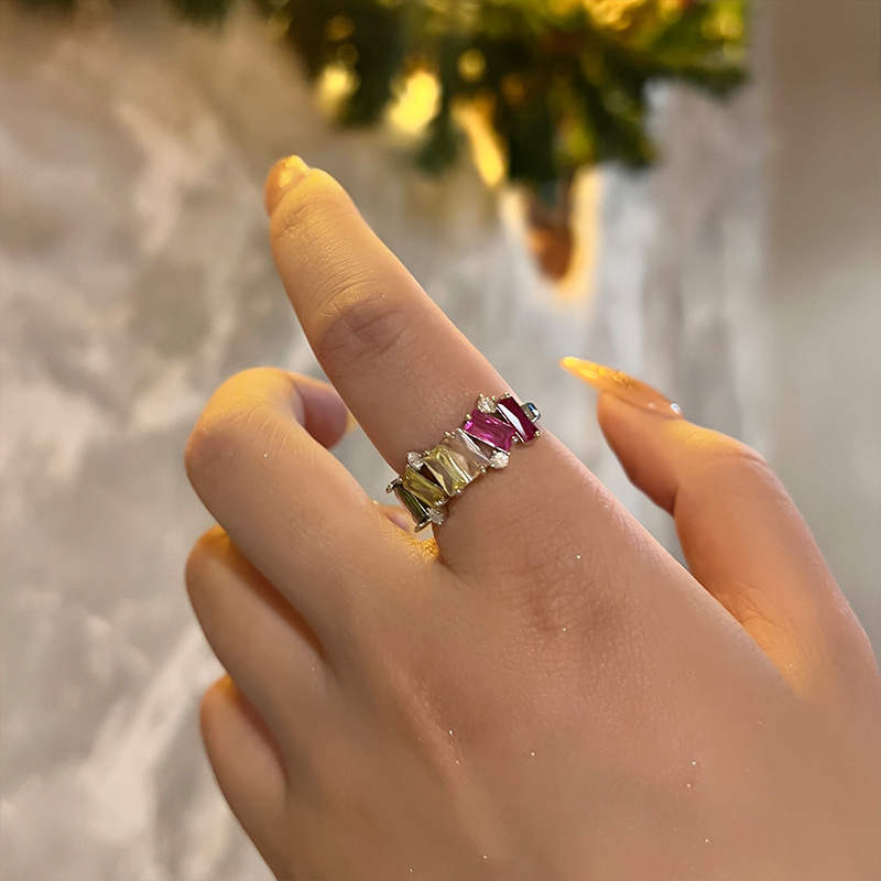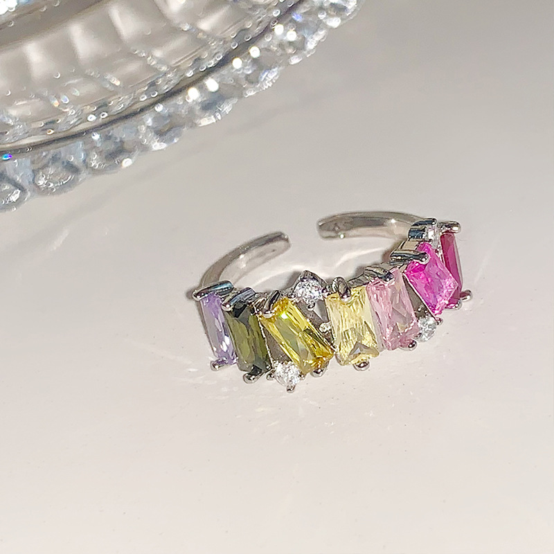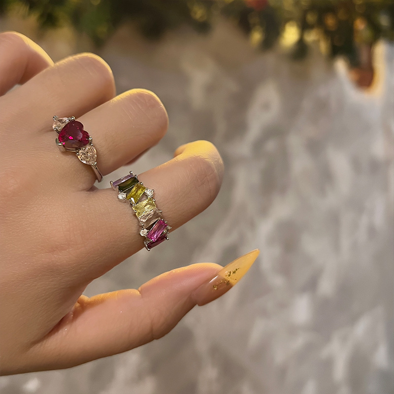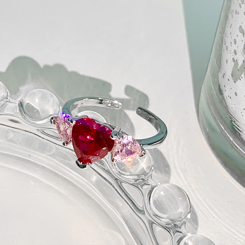 气质彩色锆石戒指轻奢高级感超闪爱心开口可调节指环百搭食指戒子