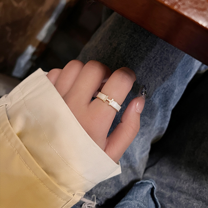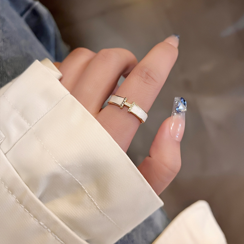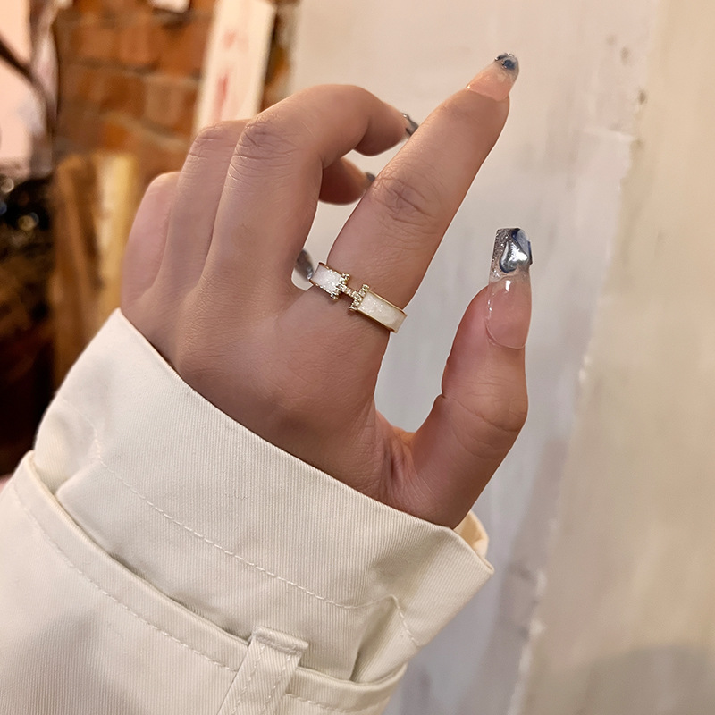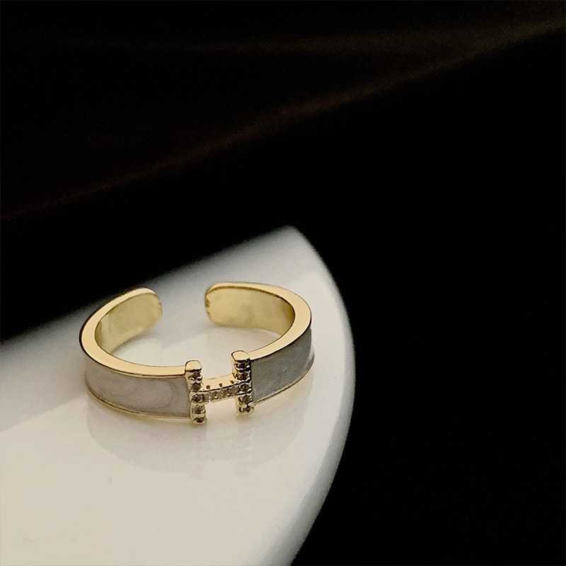 H字母滴釉开口可调节戒指女小众设计感轻奢镶钻食指指环百搭戒子