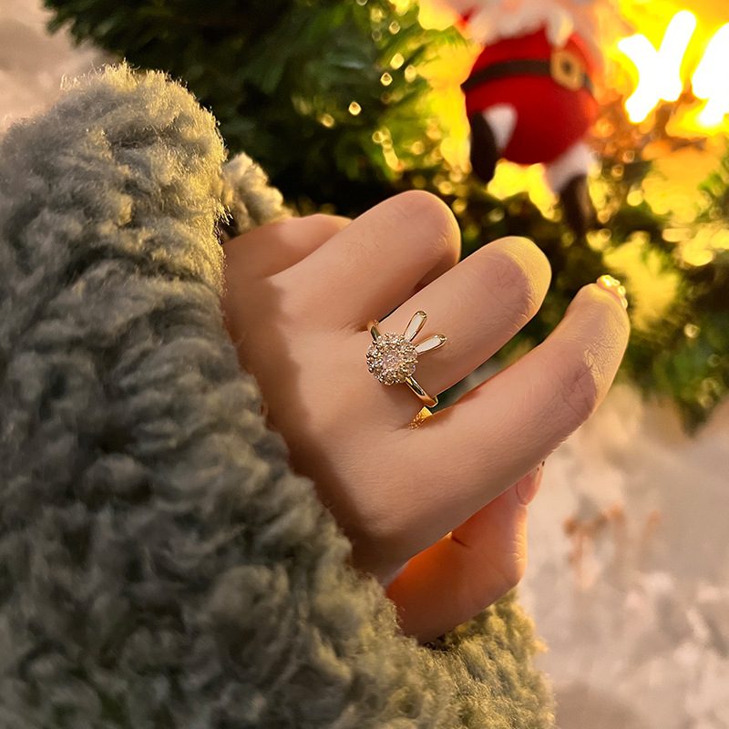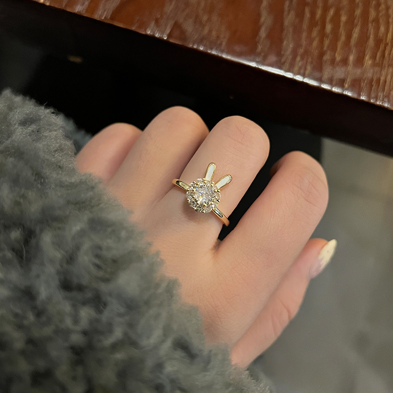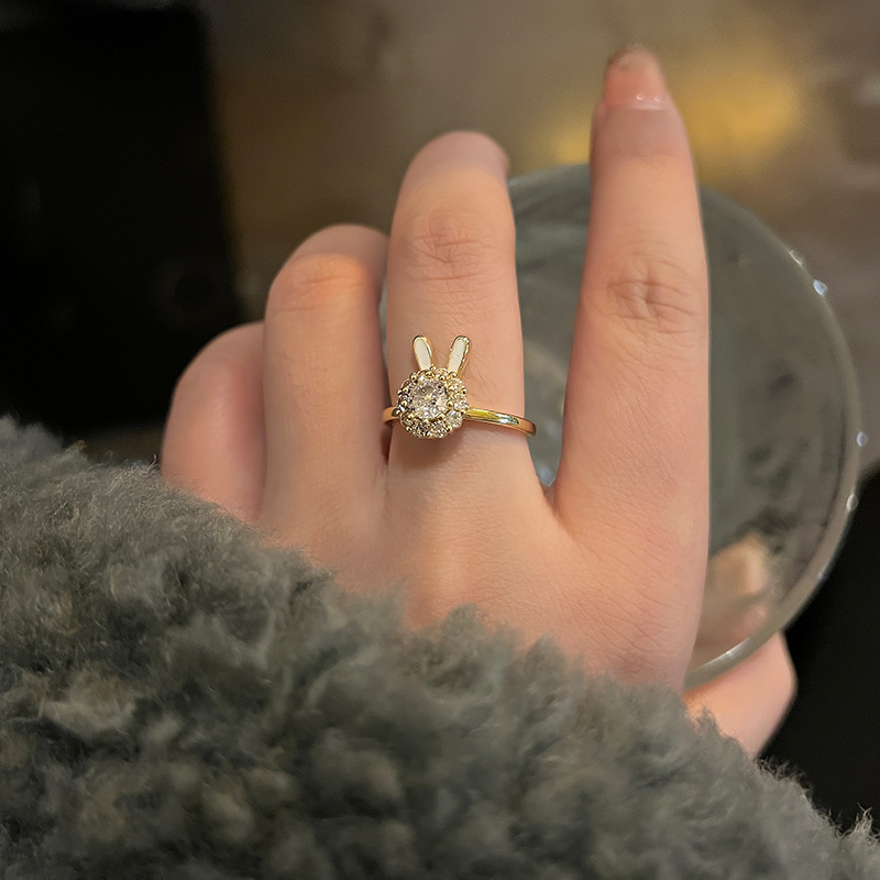会旋转的小兔子戒指本命年可爱灵动可调节食指戒轻奢小众设计指环