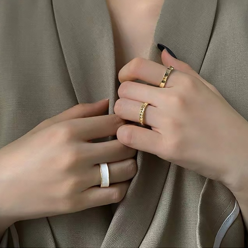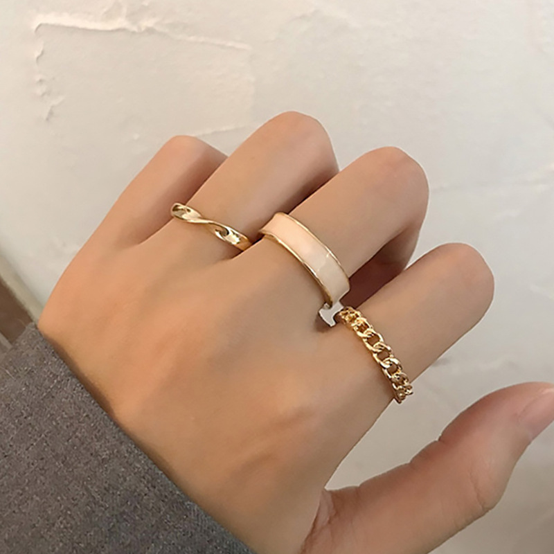 简约气质百搭滴釉麻花金属开口戒指女年新款个性三件套可调节