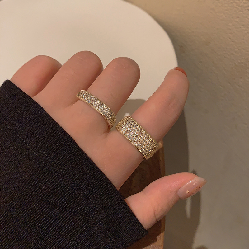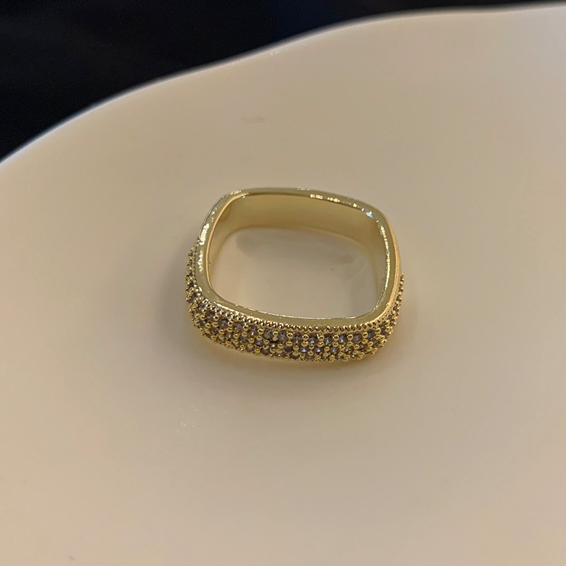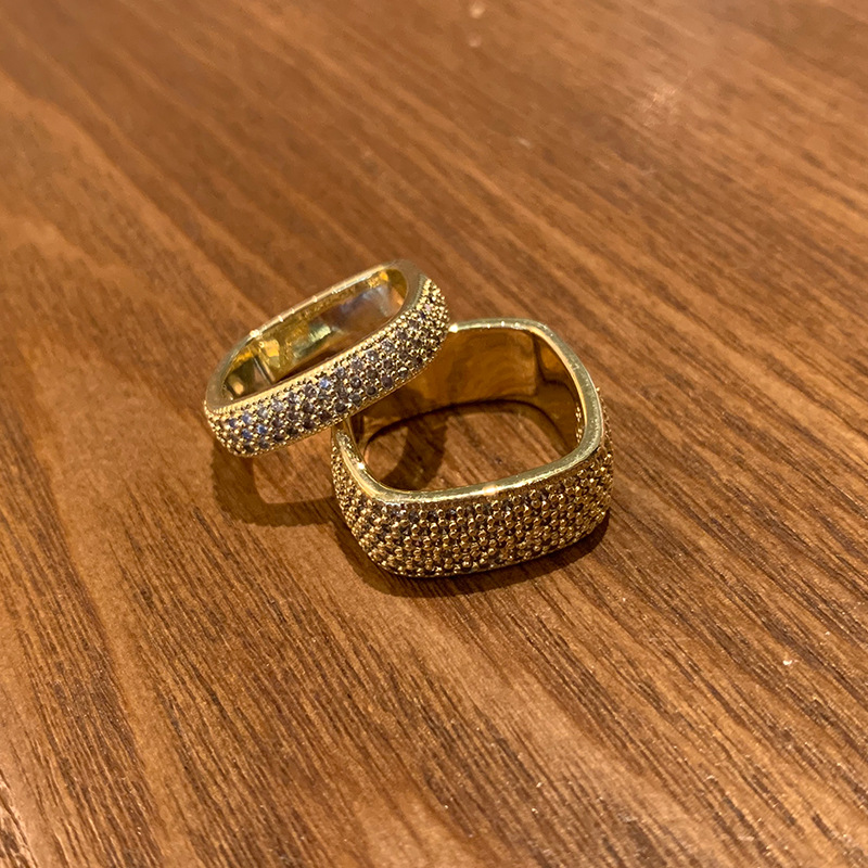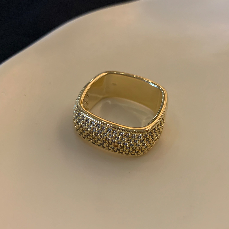 欧美夸张满钻方形戒指优雅气质轻奢宽版食指环小众设计高级感戒子