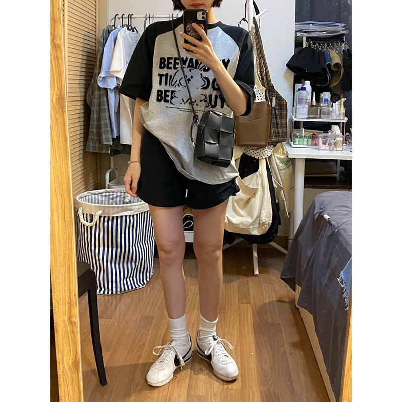 欧货大版t恤女夏oversize宽松插肩袖ins潮短袖冷淡系独特别致上衣