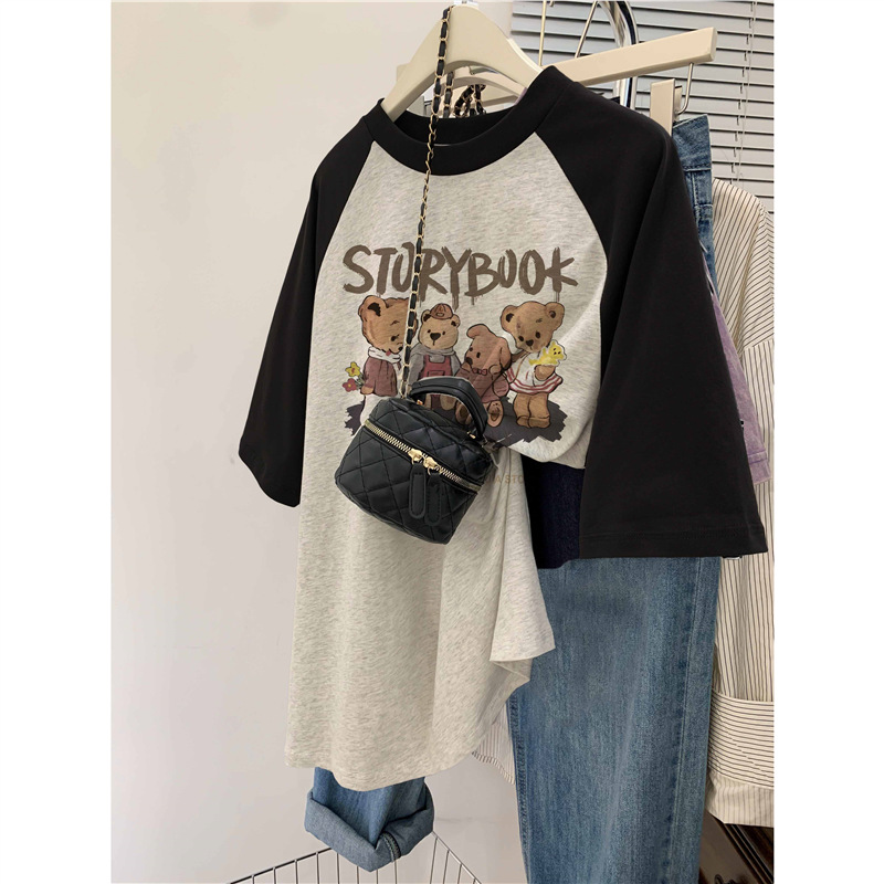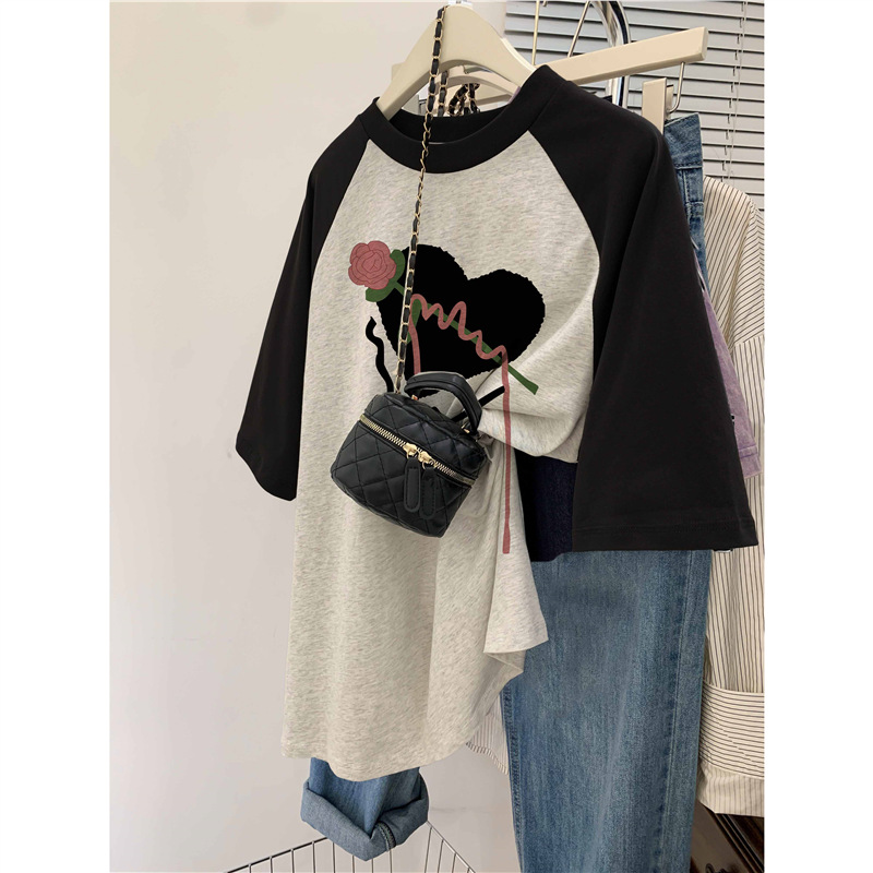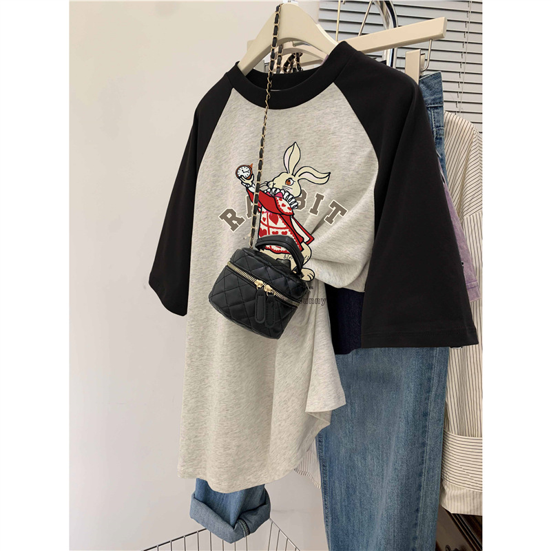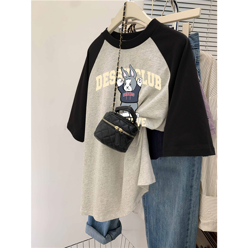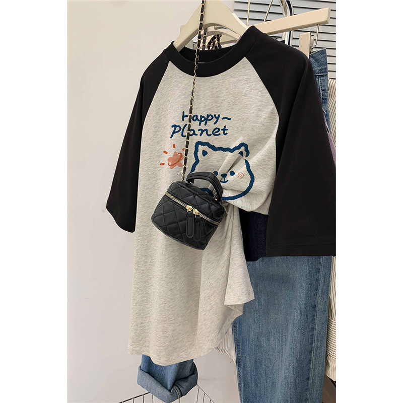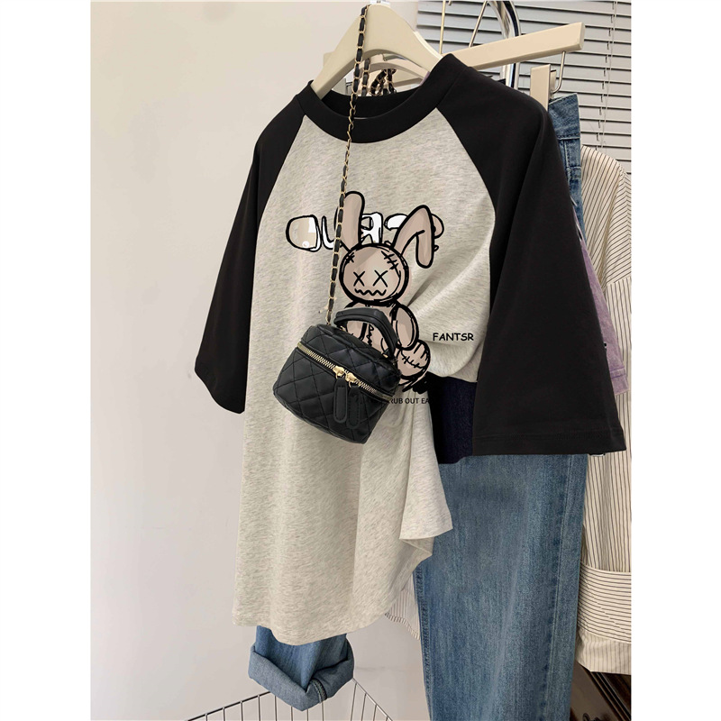 大码短袖t恤女夏新款插肩袖高级感显瘦ins潮胖mm遮肚上衣藏肉